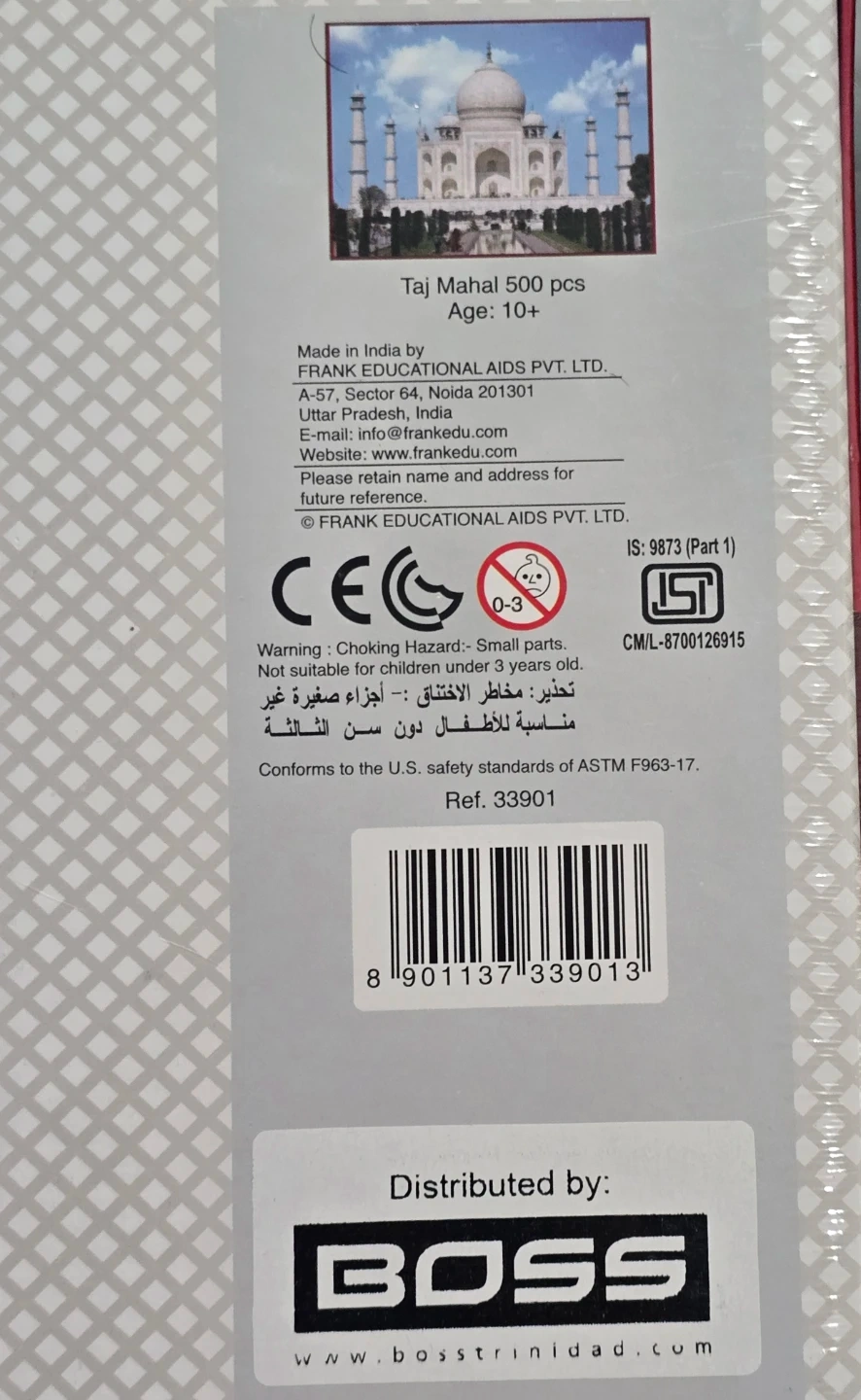 It's a brand new Frank puzzle featuring the Taj Mahal with 500 pieces. The finished size is 46 x 34.5 cm. Recommended for ages 10+.