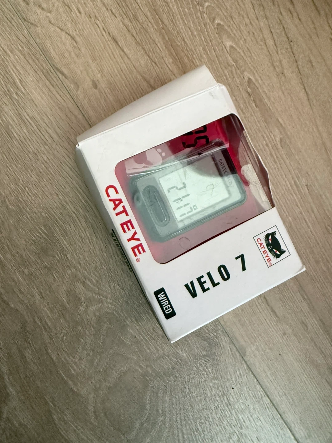 This Cateye Velo 7 bike computer tracks speed and distance. It's a wired model and comes with 7 functions. Great for keeping tabs on your cycling stats!