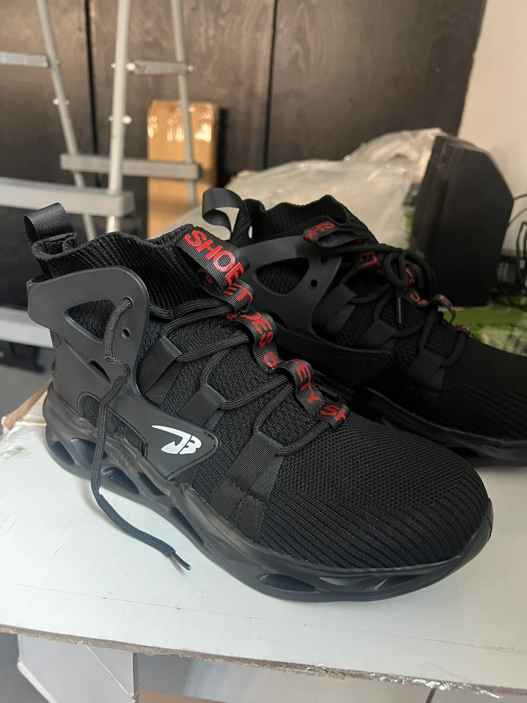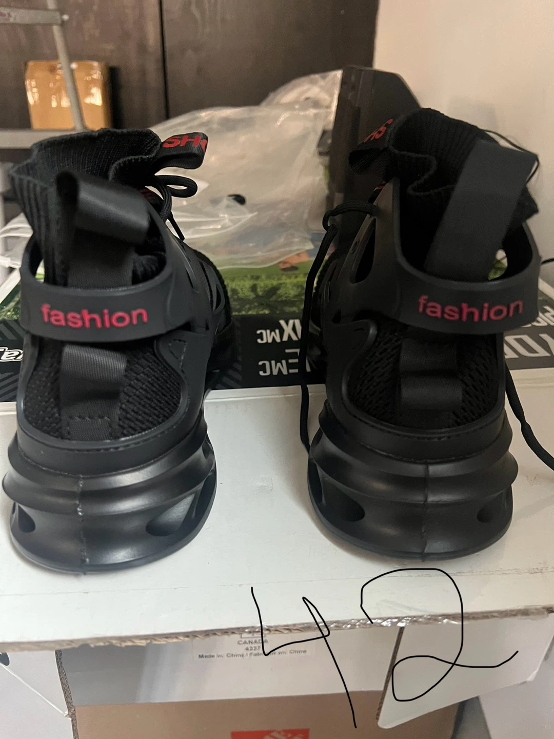 Selling a pair of brand new black fashion sneakers in size 42. They have a unique design with red accents and are in great condition. Perfect for adding a stylish touch to your everyday look!