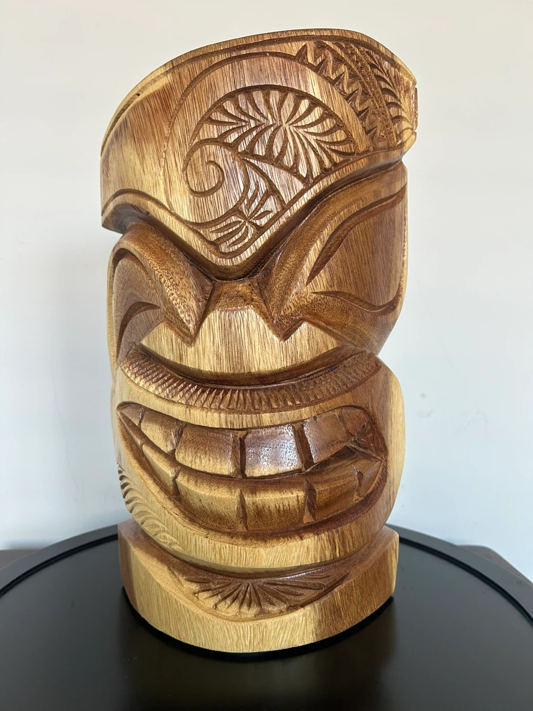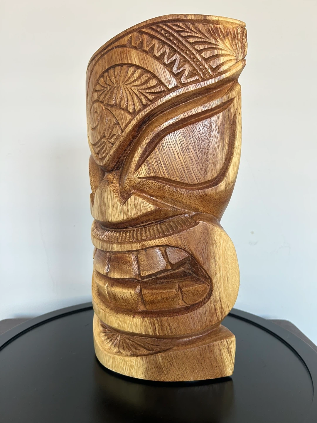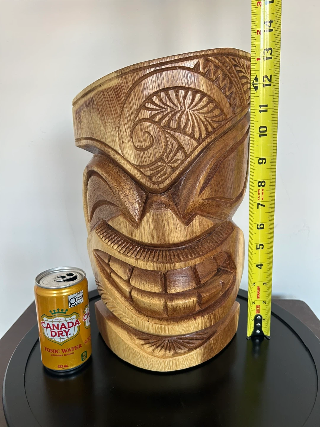 Large & Heavy Hand-Carved Solid Wood Tiki Face – 12.5”