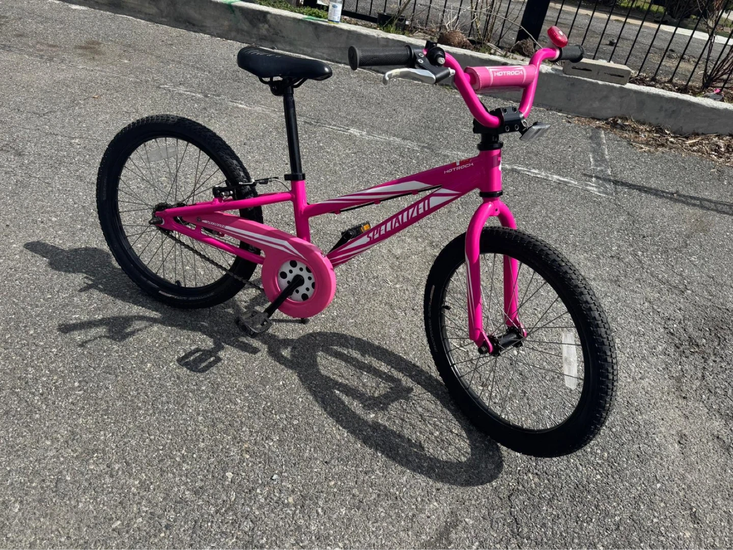 This is a pink Specialized Hotwalk kids bike. It's designed for young riders. Perfect for learning to balance and ride! 20 inch