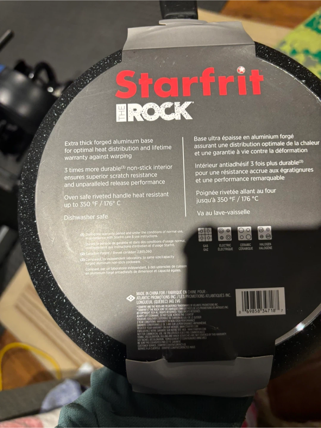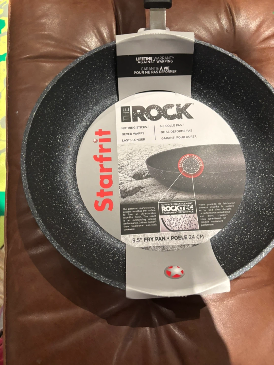 This Starfrit The Rock fry pan is made with extra thick forged aluminum for optimal heat distribution. It features a 3 times more durable non-stick interior for superior scratch resistance and unparalleled release performance. Oven safe handle rated up to 350°F / 176°C. Dishwasher safe.