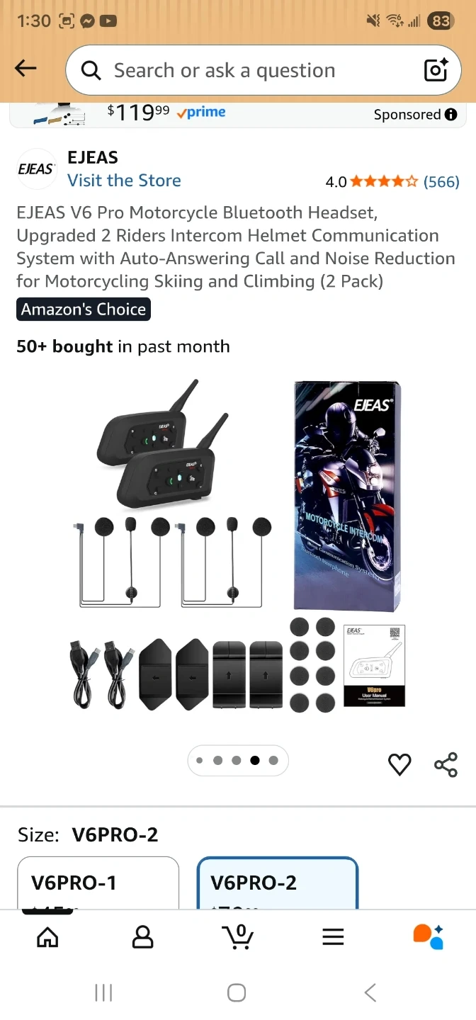 EJEAS V6 Pro Motorcycle Bluetooth Headset (2 Pack)