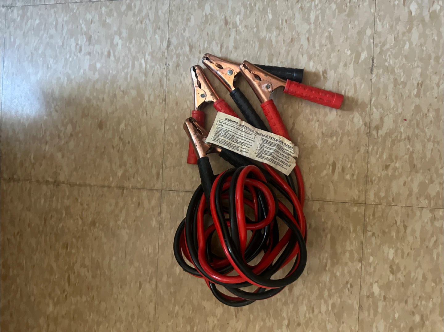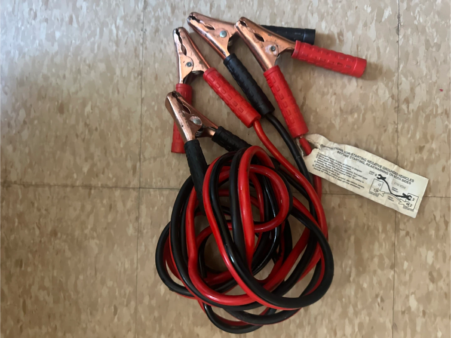 Get your car started with these heavy duty jumper cables. They're red and black with copper-plated clamps for a secure connection. Includes instructions for use.