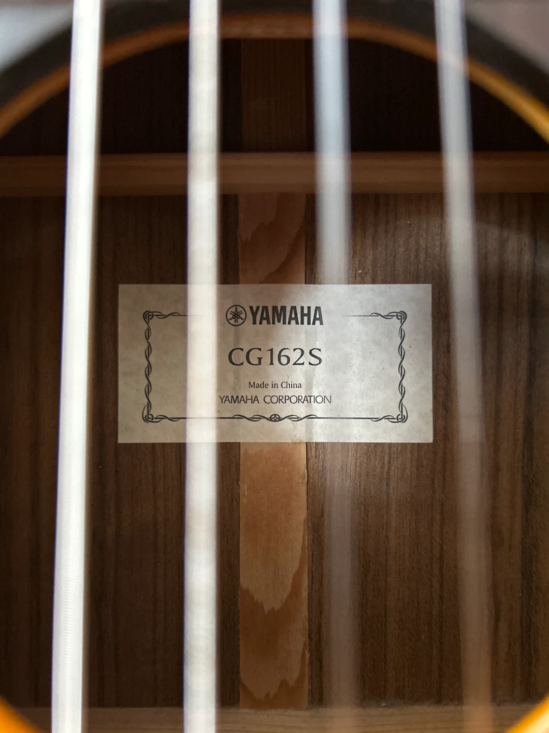 Yamaha CG162S classical guitar made in China. It features a natural finish and nylon strings. This guitar's neck is made of nato wood with a rosewood fingerboard. A nylon string instrument for beginners and intermediate players. Sound sample available upon request.