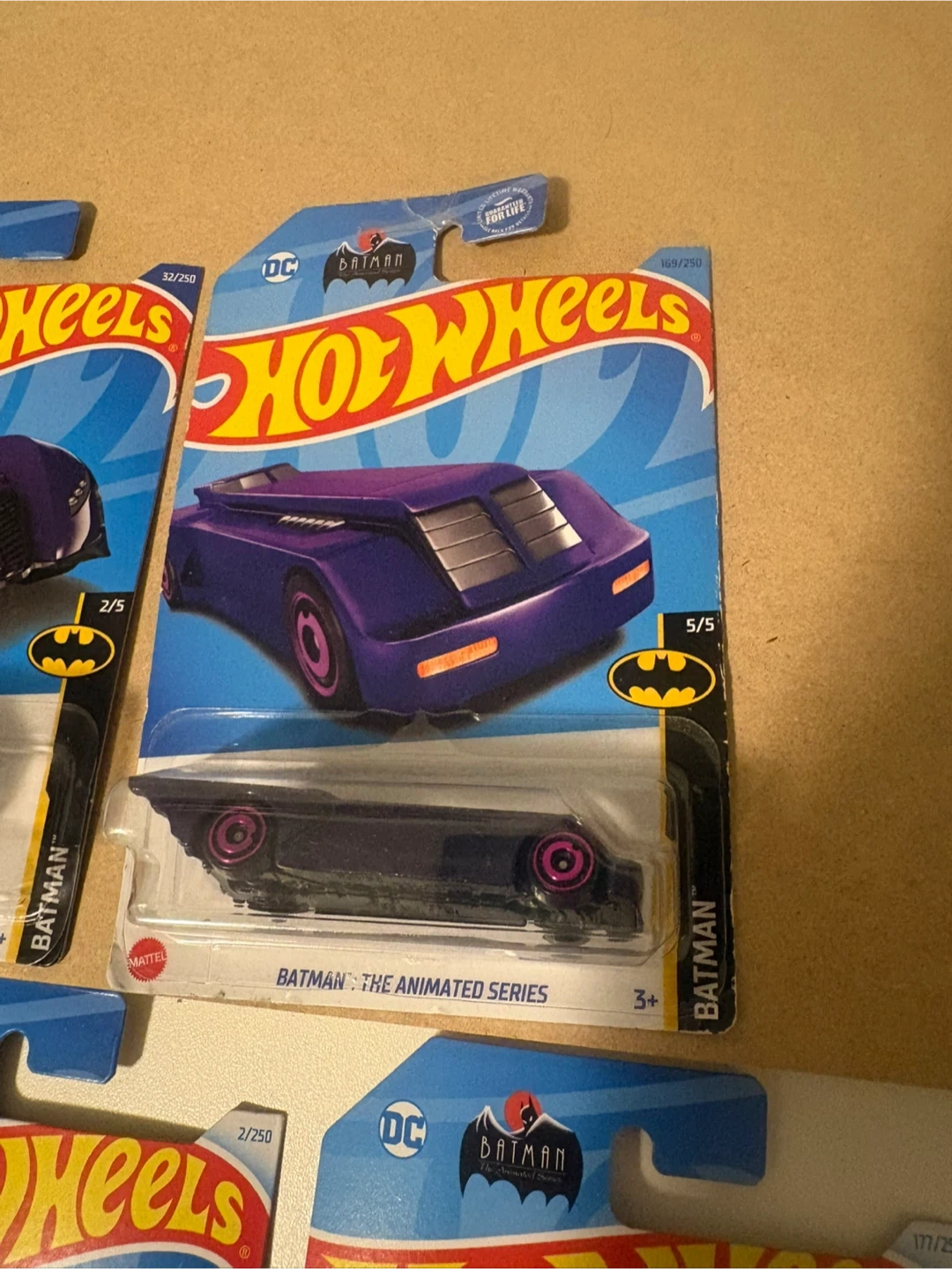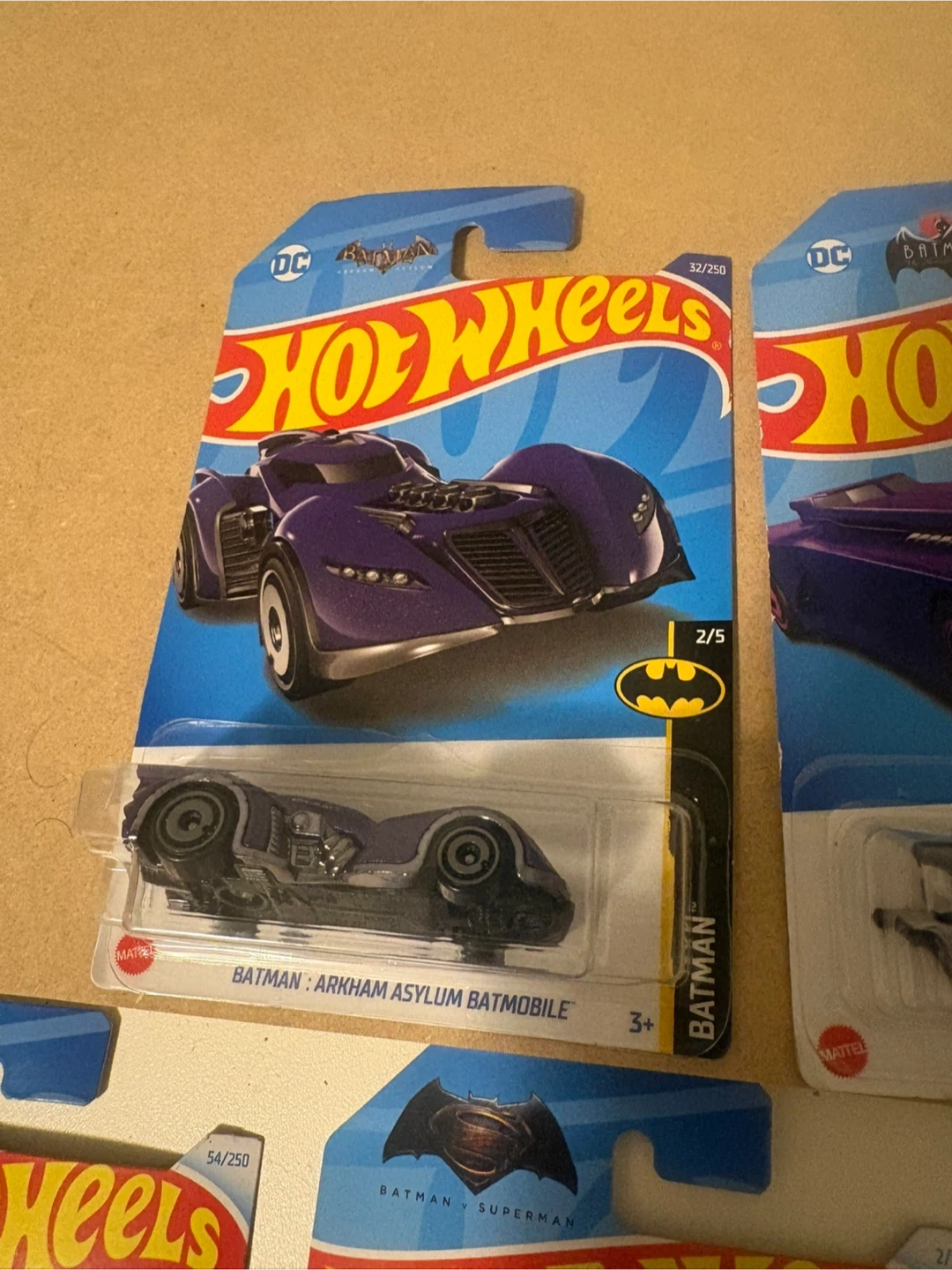 A collection of Hot Wheels die-cast Batmobiles from the Batman series. All pf the cars are sealed in their original packaging and I am selling them as a BUNDLE. All 5 cars for $25 but i am welcome to offers.