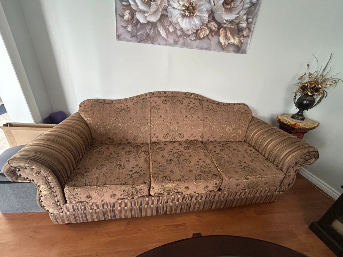 Brown Floral Living Room Sofa Set