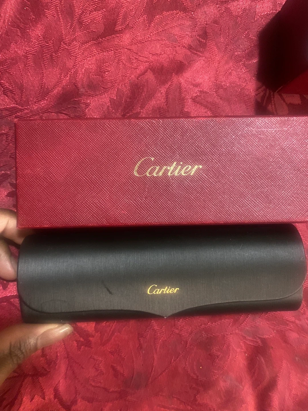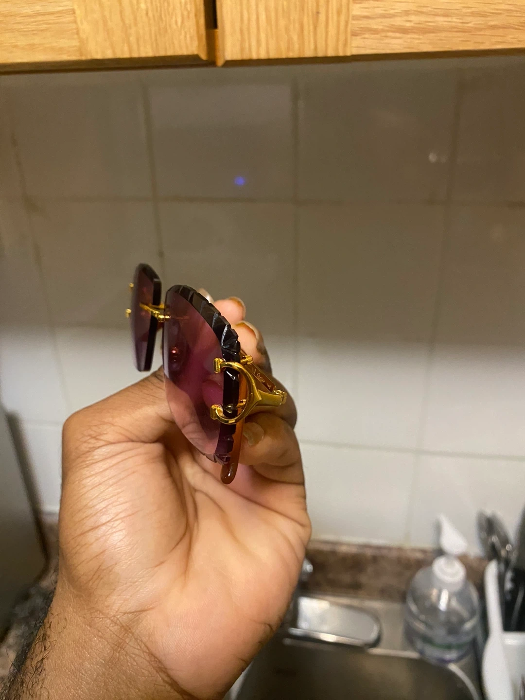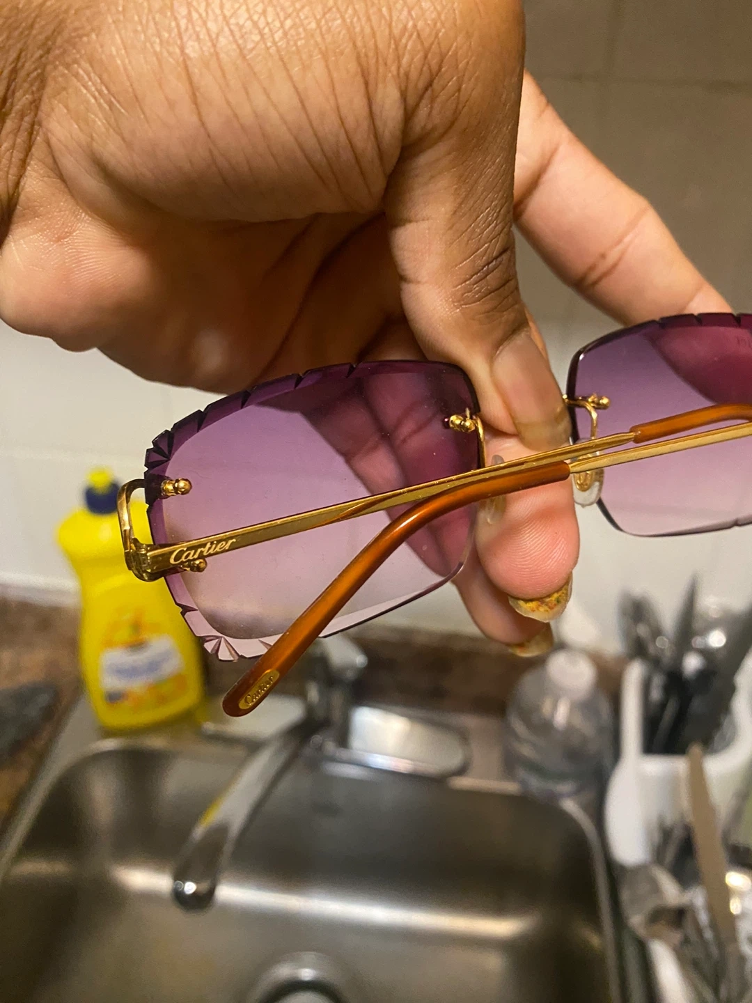 Selling a pair of Cartier sunglasses. They come with the original Cartier case. The sunglasses have a gold frame and purple tinted lenses. Feel free to message me if you're interested!
