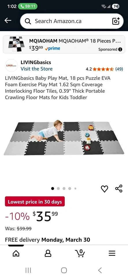 LIVINGBASICS Baby Play Mat, 16 pcs Puzzle EVA Foam Exercise Play Mat. 1.62 Sqm Coverage Interlocking Floor Tiles, 0.39" Thick Portable Crawling Floor Mats for Kids Toddler. Pet free and smoke free home.