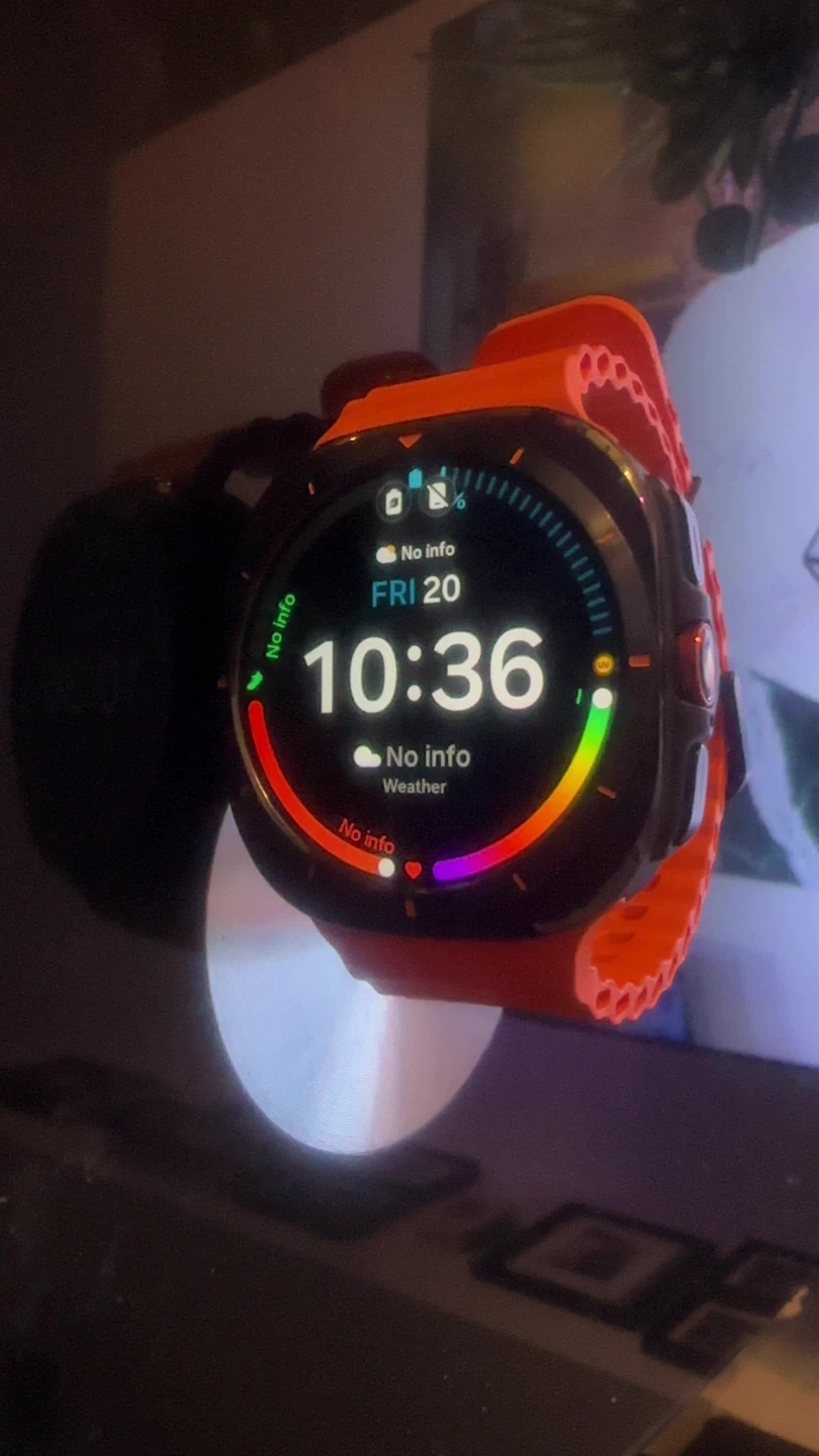 Hi I’m selling a mint condition Samsung galaxy ultra 8 watch with a orange strap this item works great and is compatible with other androids devices unfortunately this item doesn’t come with box or charger if you have any questions please feel free to contact me