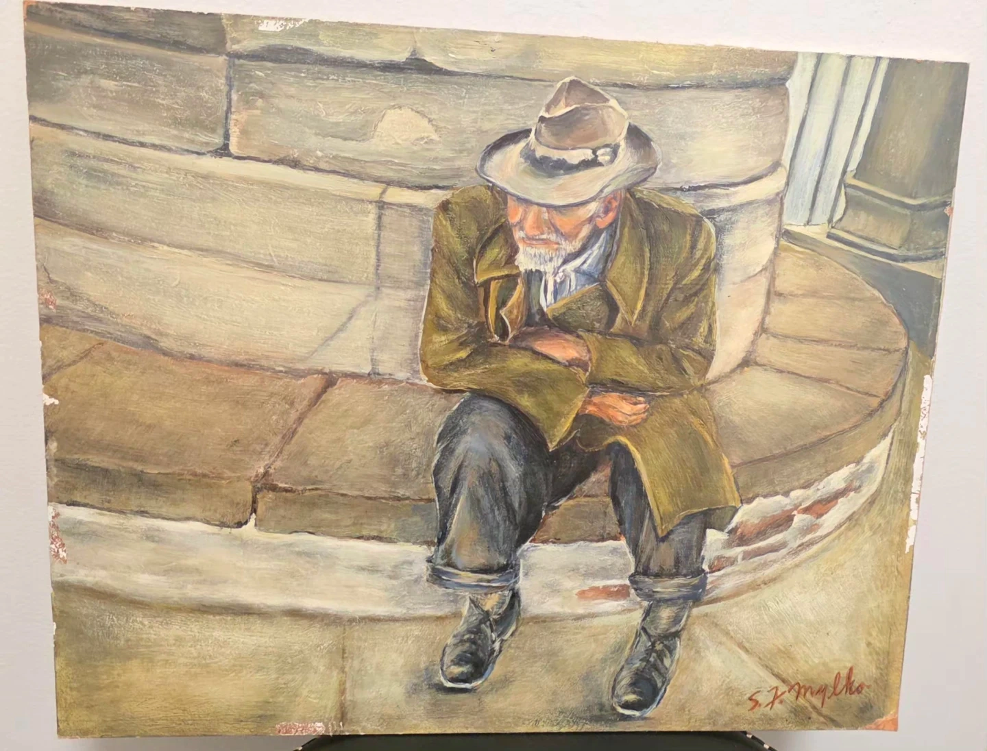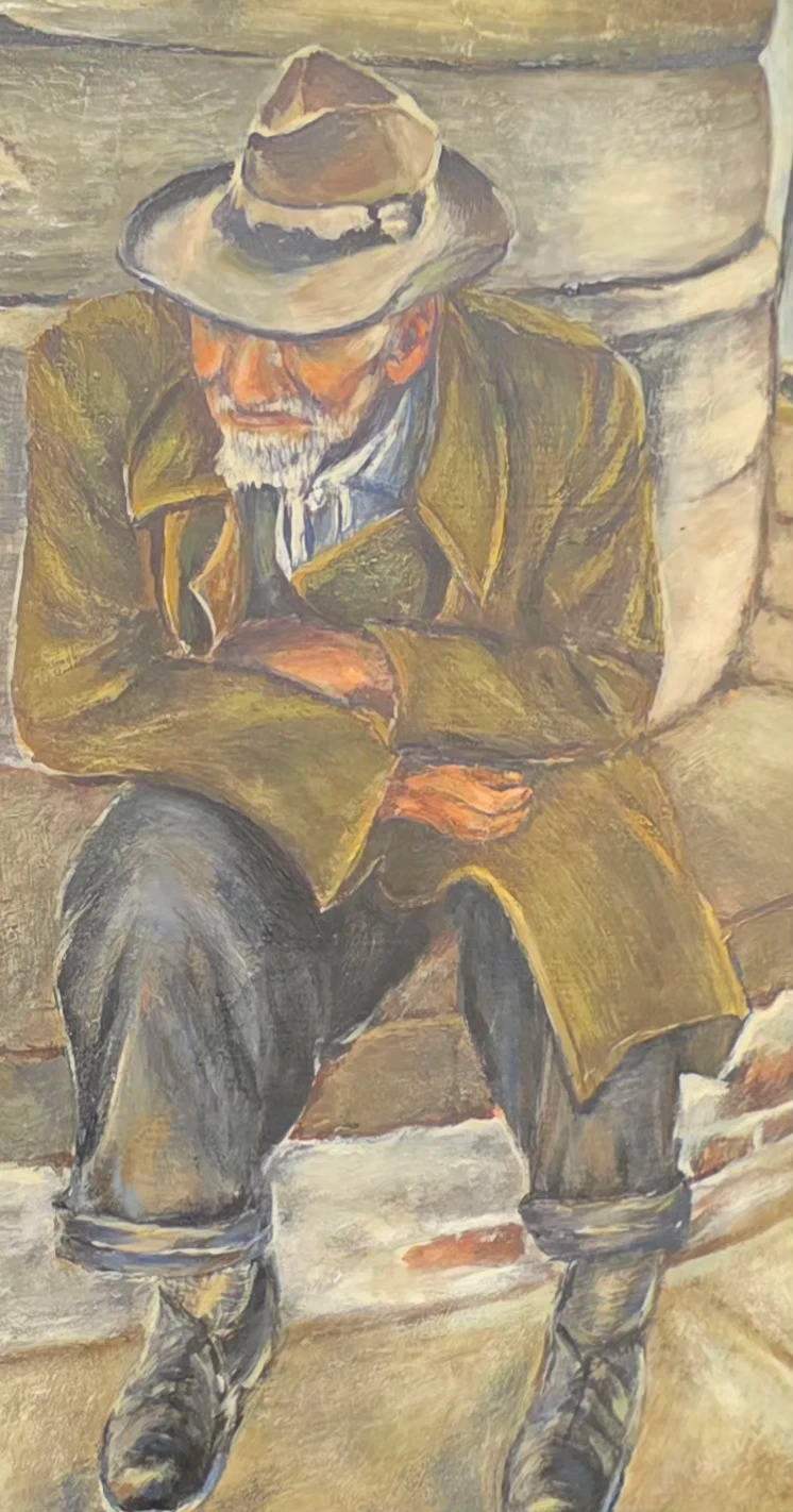 °°°Delve into the rich tapestry of history and culture with "Vintage Hand Painted, Oil On Canvas, "Post-Battlefield Scars," a poignant piece by S.F. Mylko.