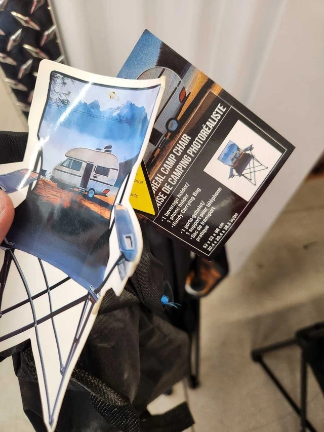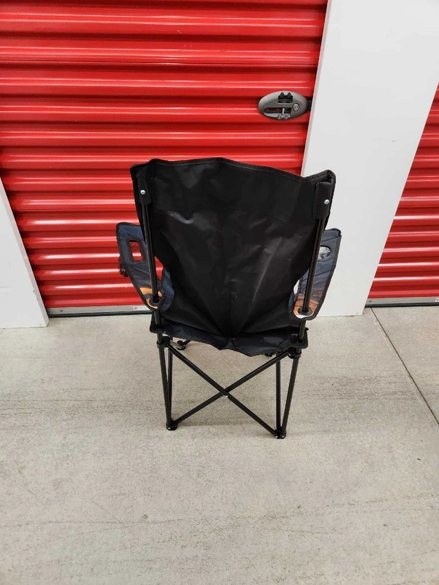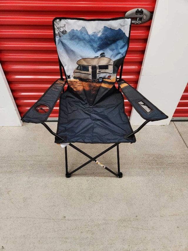 Get ready to relax in style with this Real Camp Chair, designed for ultimate comfort and convenience during your outdoor adventures. This chair is new in the bag, so it has never been used. The chair features a beverage holder, and comes with a handy carrying bag, making it perfect for camping, picnics, or backyard relaxation. It measures approximately 53 x 53 x 86 cm when set up, providing a comfortable seating experience wherever you go. Specifications: Beverage holder, Handy carrying bag, Size: 53 x 53 x 86 cm. The price is $30.