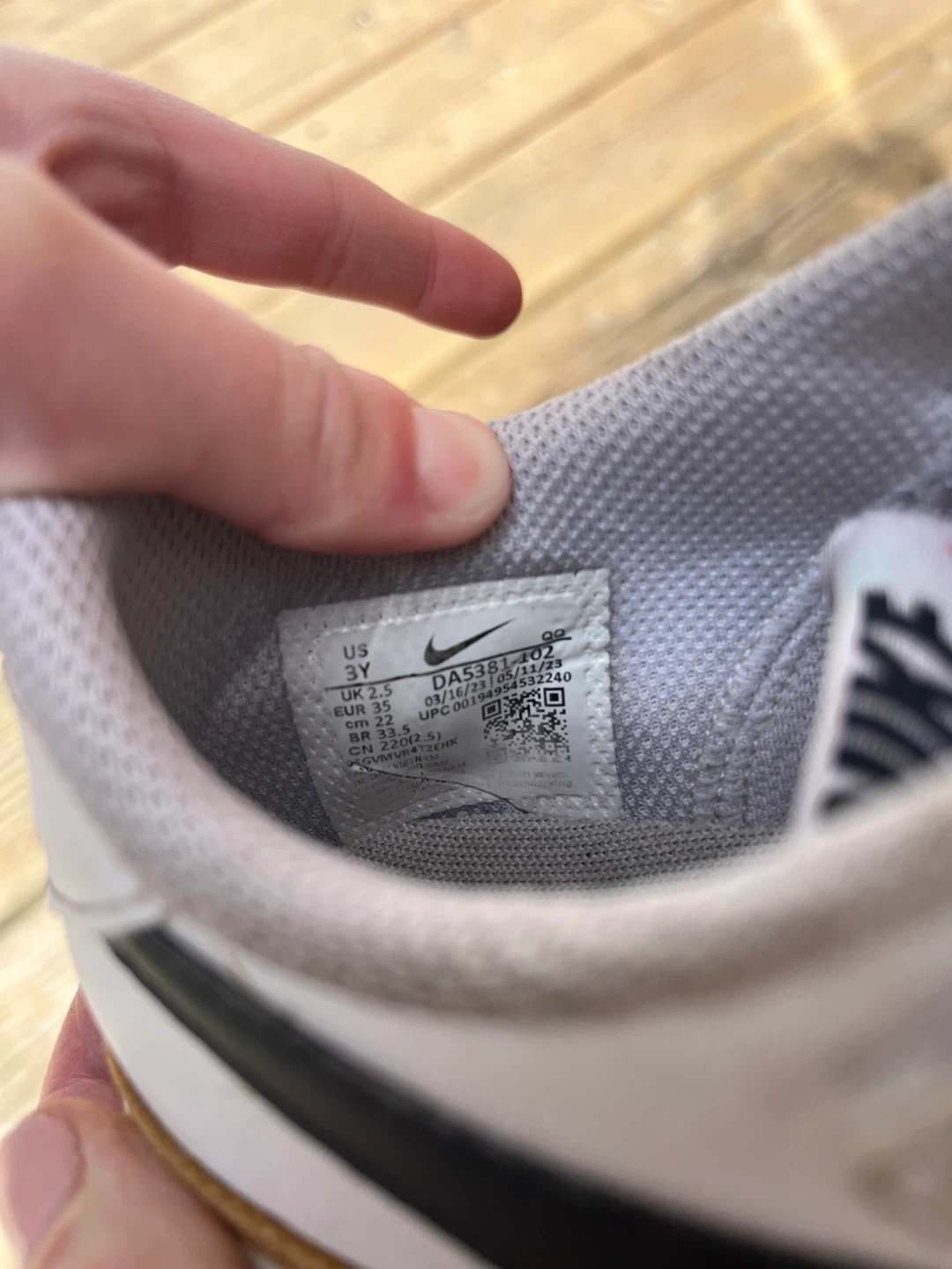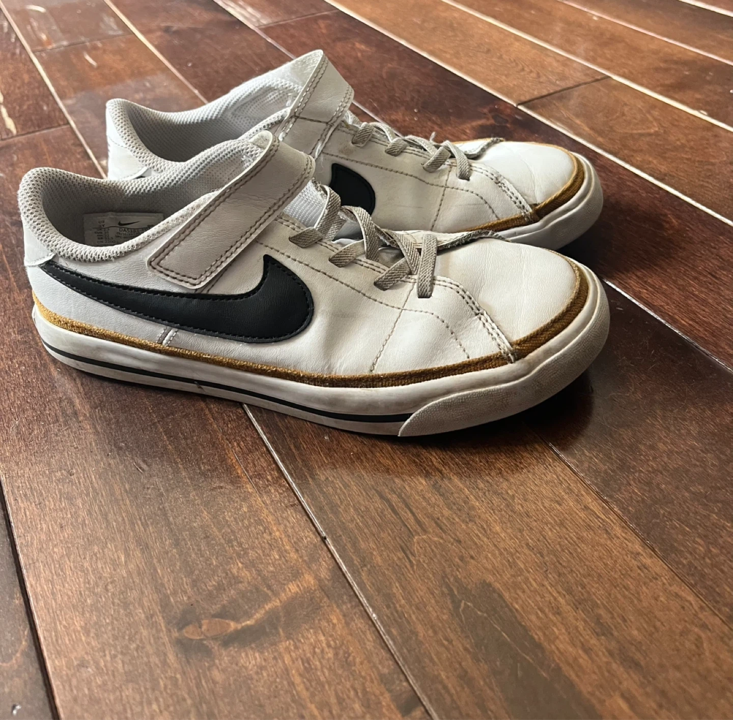 Nike Kids Shoes Size 3Y White Black Velcro