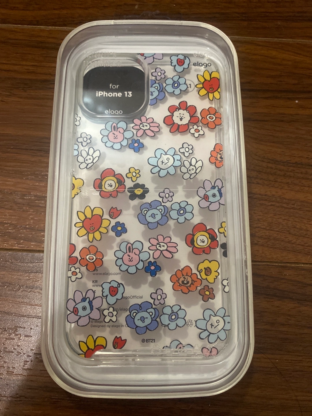 Brand new phone case. Designed for iPhone 13. Features a cute BT21 design. Clear case with colourful flower and character print. Comes in original packaging.