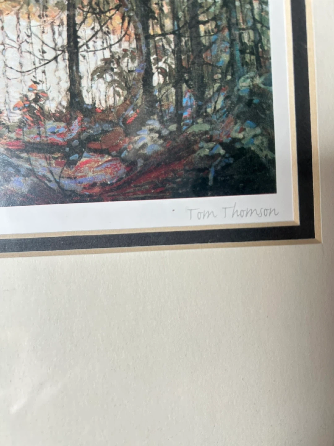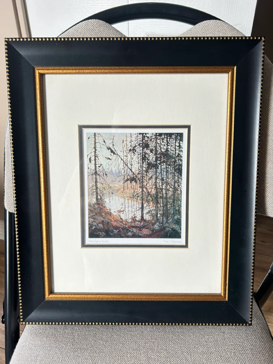 This is a framed print of "Northern River" by the artist Tom Thomson. His most popular print.