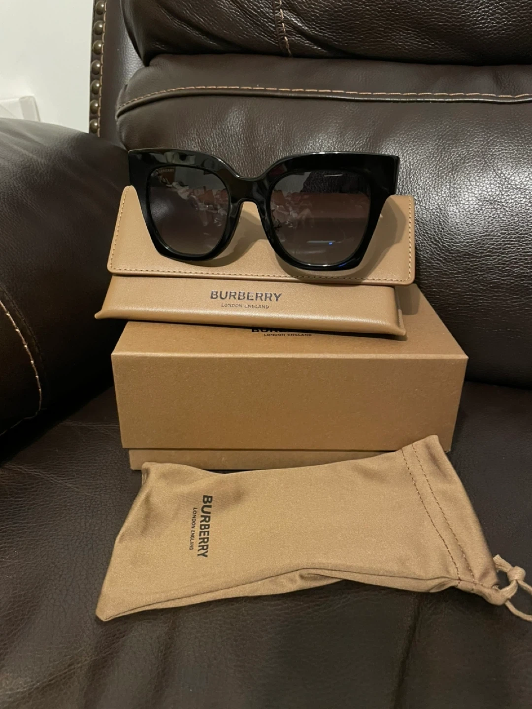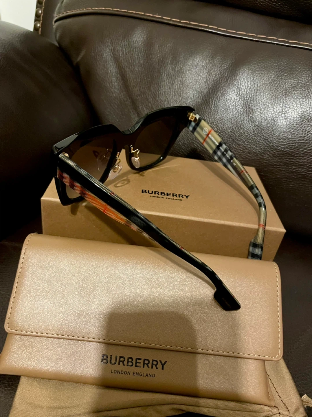 Stylish Burberry sunglasses with a distinctive design! The model number is B 4364-F. These sunglasses come with the original box and case. Brand New Never used (Giftable)