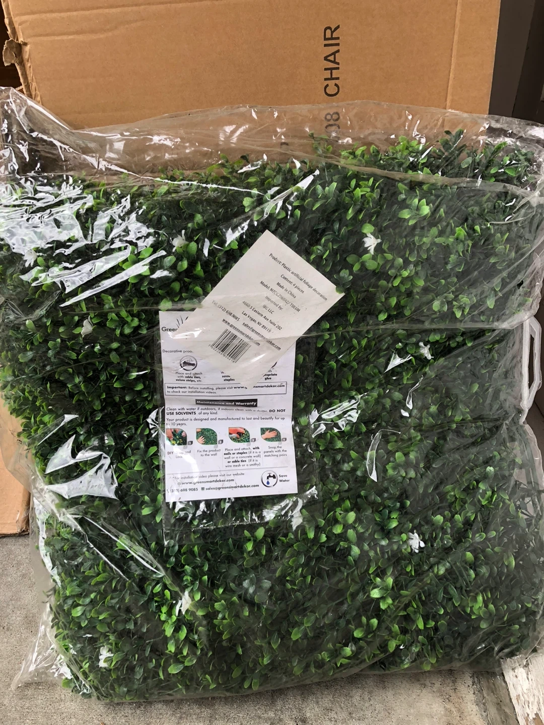 🌸 brand new in bag Can open for you to check price firm… Get a realistic look and feel with Greensmart Dekor. Detailed with life like leaves that create a natural and calming environment. Perfect for building a green wall, hedge, privacy fence, disguising unsightly areas. Panels can be used indoors or outdoors. Each pack contains set of 4 panels (19.68 in x 19.68 in) which cover 10.76 sqft Made of PE that is UV proteted Weather Resistant Maintenance free Quick and easy to install Eco friendly-no water needed