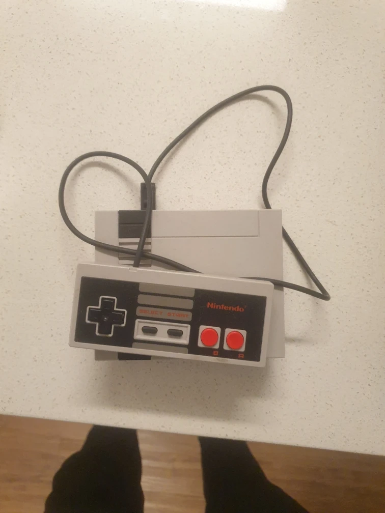 Miniature Nintendo Entertainment System. Includes one controller. HDMI output. Great for retro gaming, over 200 games pre-installed