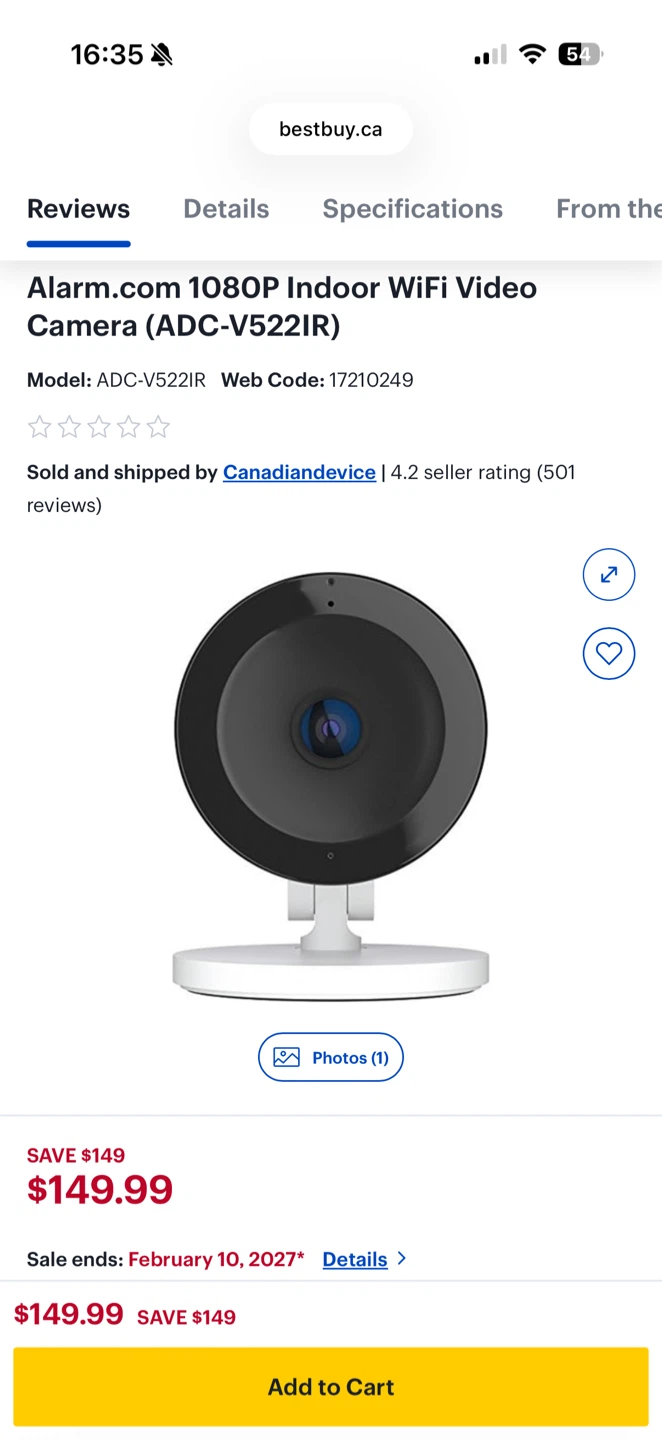 1 / 31 / 3Buy & SellAlarm.com wifi camera ADC-V522IRAlarm.com wifi camera ADC-V522IR$40New condition Just opened 1 for $40 2 for $70 Using for subscribe alarm.com plan Pick up onlyConditionNewWHERE TO MEETCheck LocationView MapSELLERverifiedEddieBurquitlam1598 reviews0 chats·0 favorites·8 viewsSEND CHAT TO SELLERHi Eddie! I’m interested in your listing.Hi Eddie! I’m interested in your listing.Get the Karrot app to chatSign In to chat