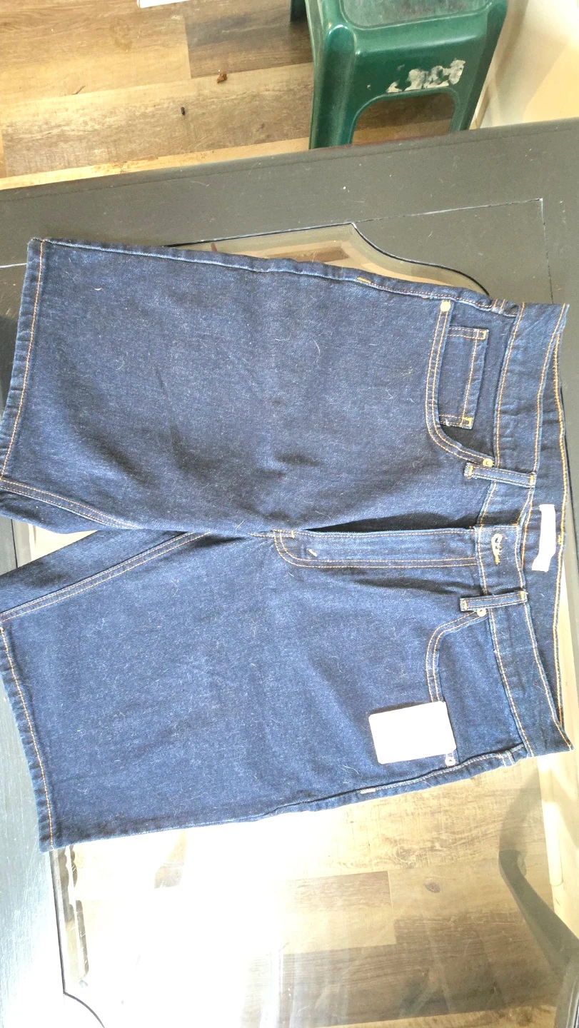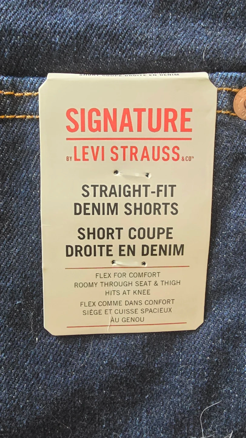 Signature by Levi Strauss & Co. straight-fit denim shorts. These shorts feature a dark wash denim. They are designed for comfort and hit at the knee.