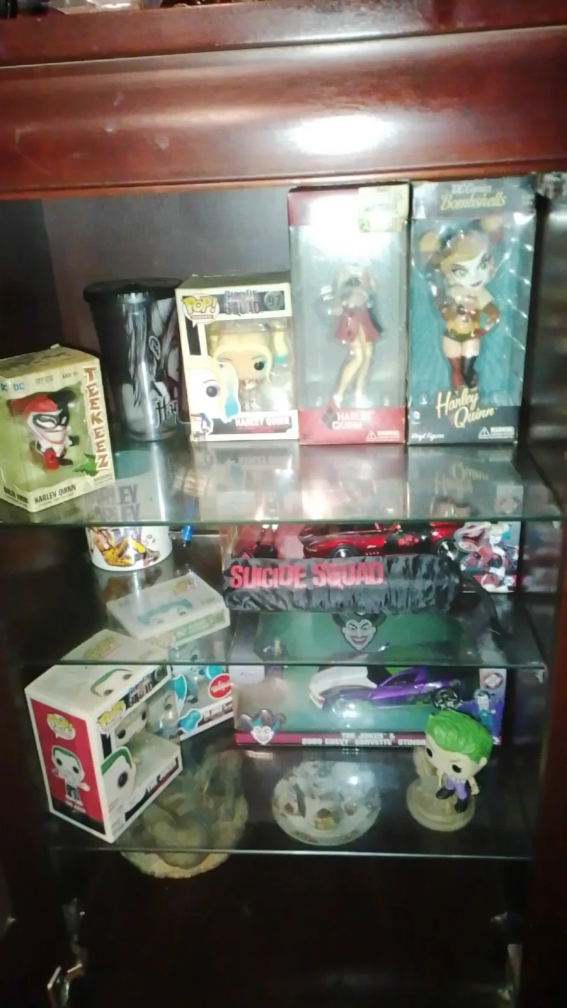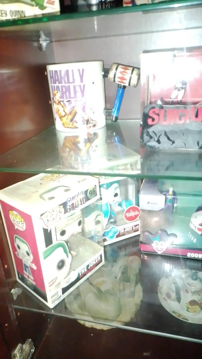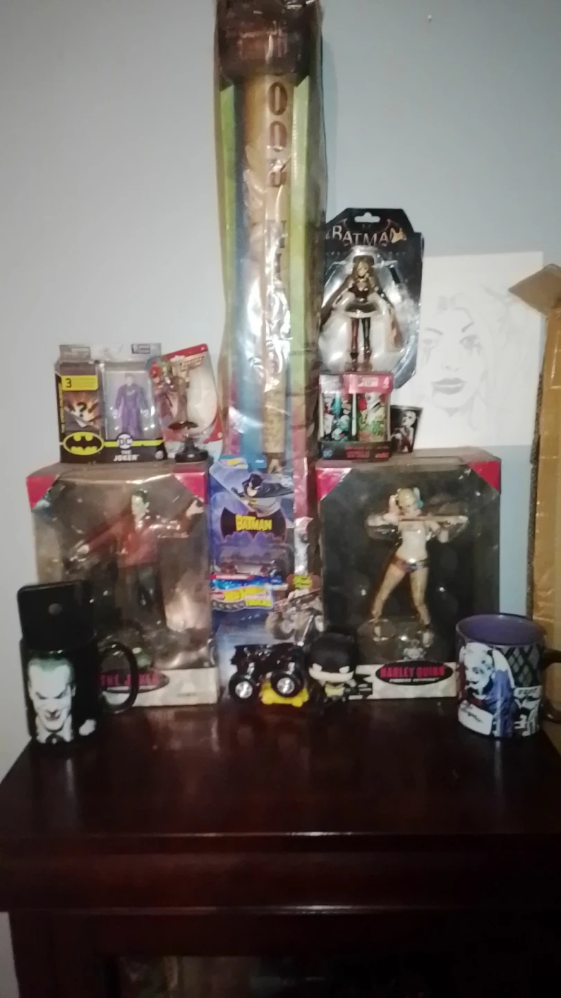 Selling a variety of Harley Quinn and Joker collectibles! There are Funko Pops, figurines, mugs, and other cool items. Perfect for any DC Comics fan! Selling hole collection together there is some Batman stuff as well as well as the cabinet with it