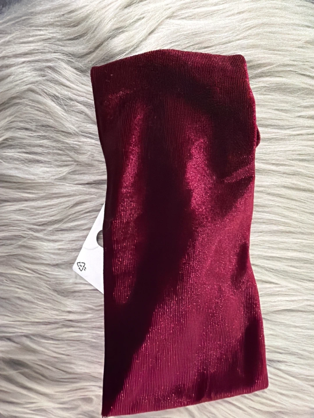This is a burgundy velvet headband. It's made with a soft velvet material. This headband is suitable for accessorizing outfits.