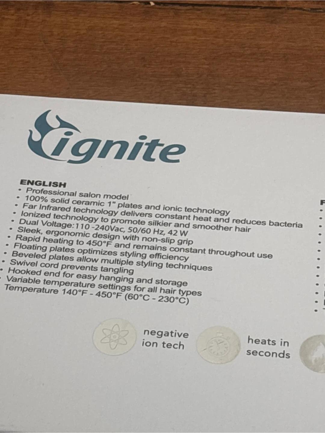 Professional salon model 1" ceramic straightening and curling flat iron. It's dual voltage and reaches up to 450°F. Features 100% solid ceramic plates with infrared technology for smoother hair. Perfect for creating various hairstyles quickly!
