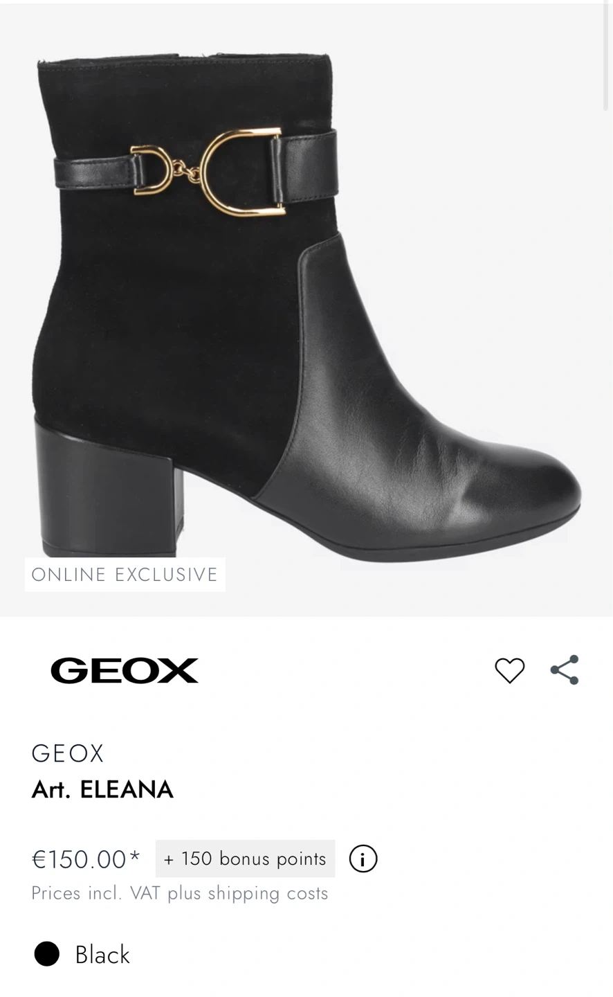 GEOX Art. ELEANA Black Suede & Leather Ankle Boots