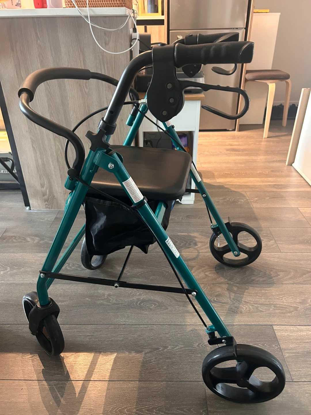 95% new Medline Teal Steel Rollator Walker with Seat and Bag