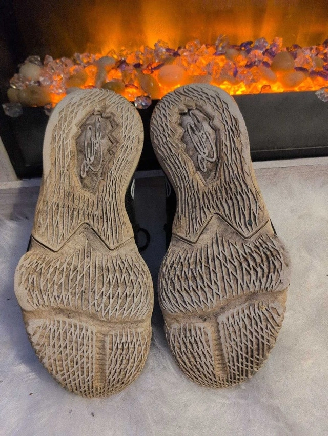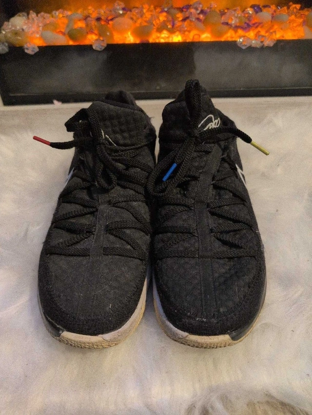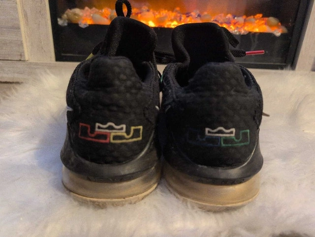 Step up your game with these LeBron 17 Low multi-colour basketball shoes in a size 10. While they've seen some action on the court and show it, they're still packed with the performance you'd expect. Perfect for anyone looking for style and function! These shoes have been used. Although I can't guarantee these sneakers will make you dunk like LeBron, I can promise you'll look good trying. If the ad's up, they're available! Obo. Cash accepted.