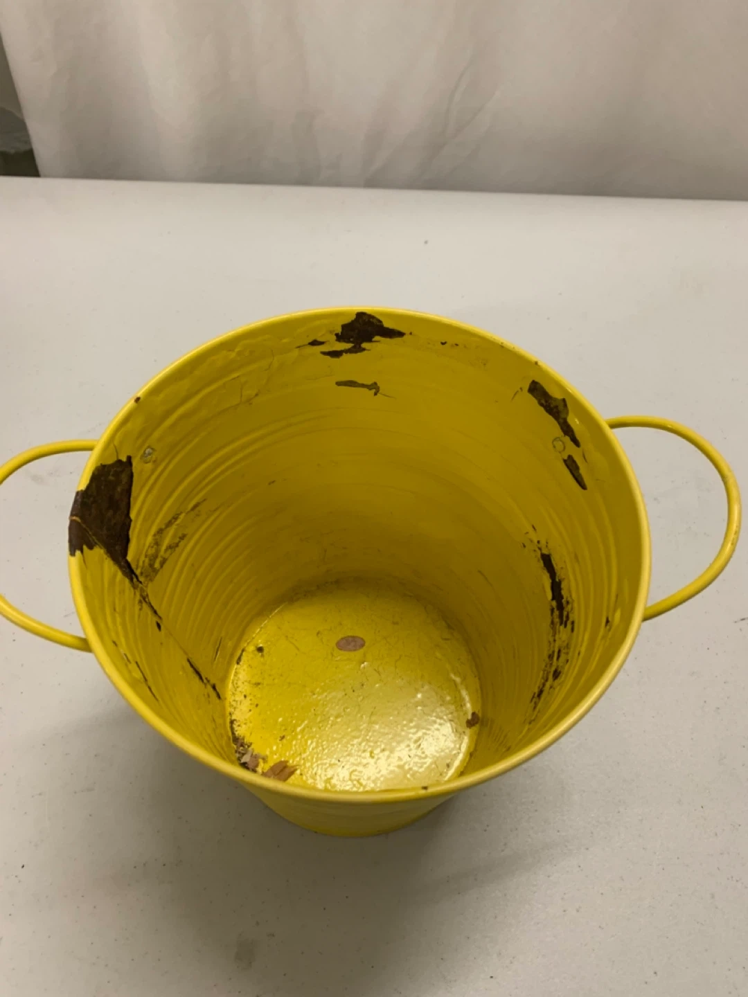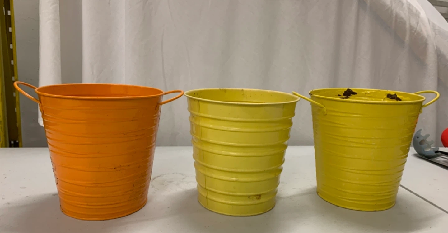 Condition: Good used condition. Please note: One of the yellow buckets has some peeling paint and rust on the inside from previous soil use (see last photo). It does not affect its use and adds a bit of rustic charm!