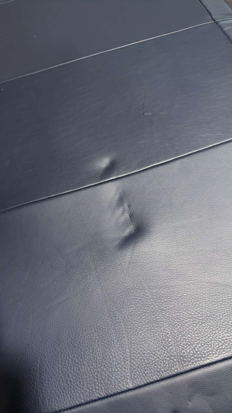 Minor stretch on the back from a wall outlet but otherwise perfect.