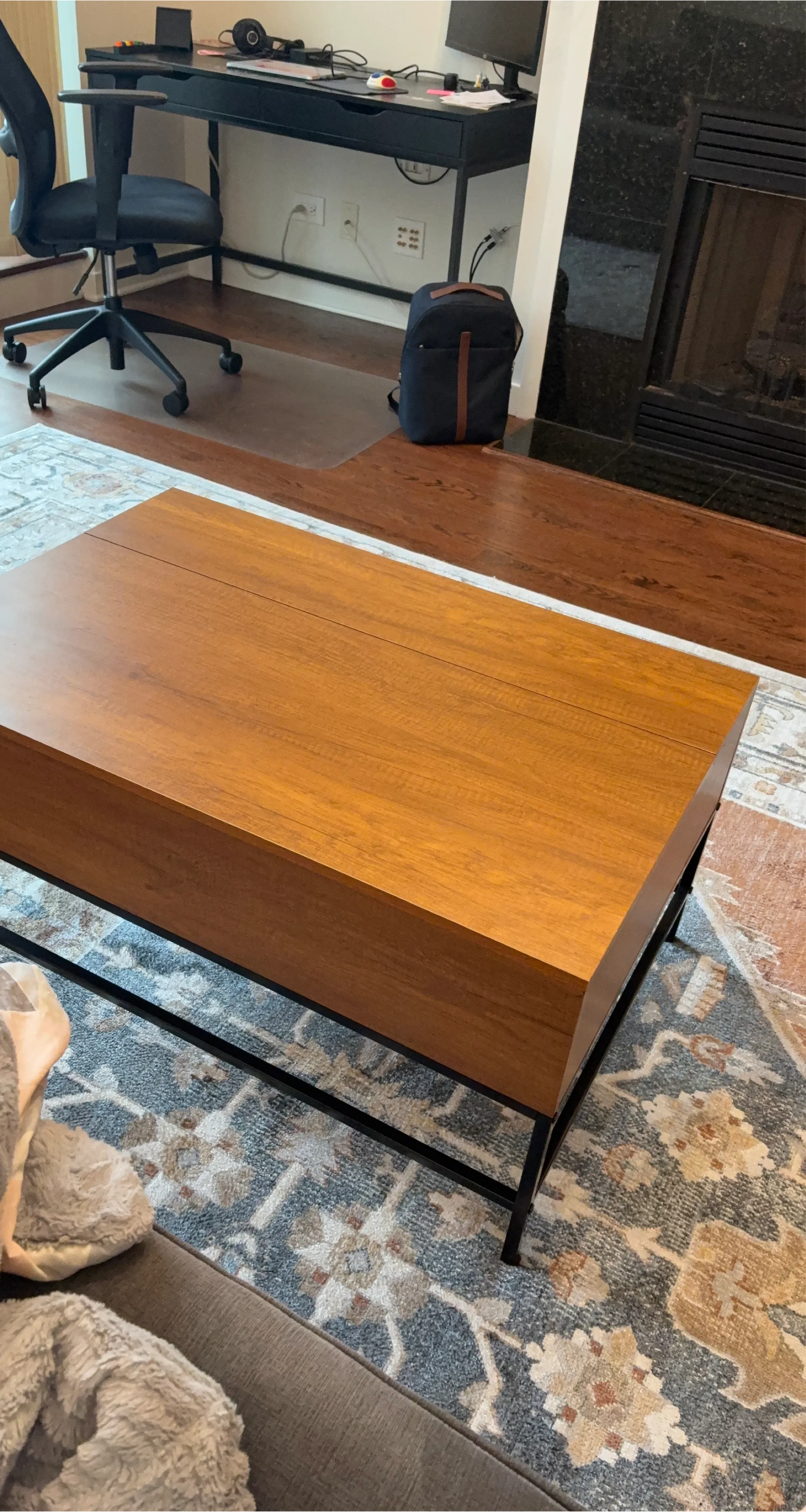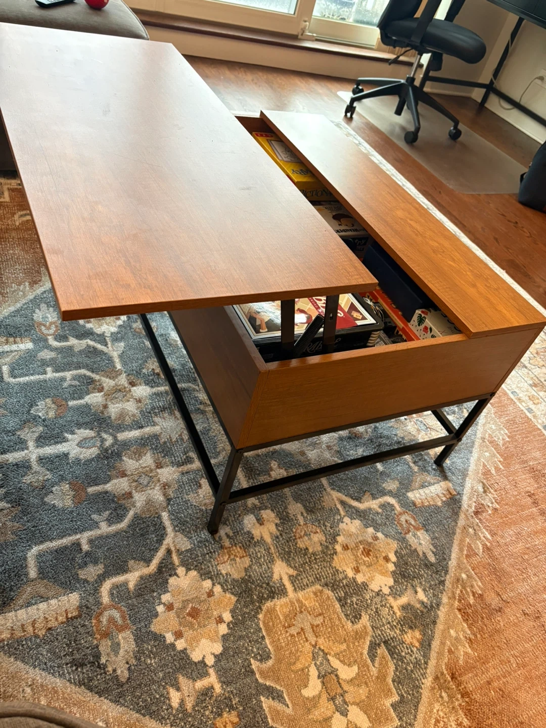 Modern Coffee Table with Black Metal Base and Lift Top