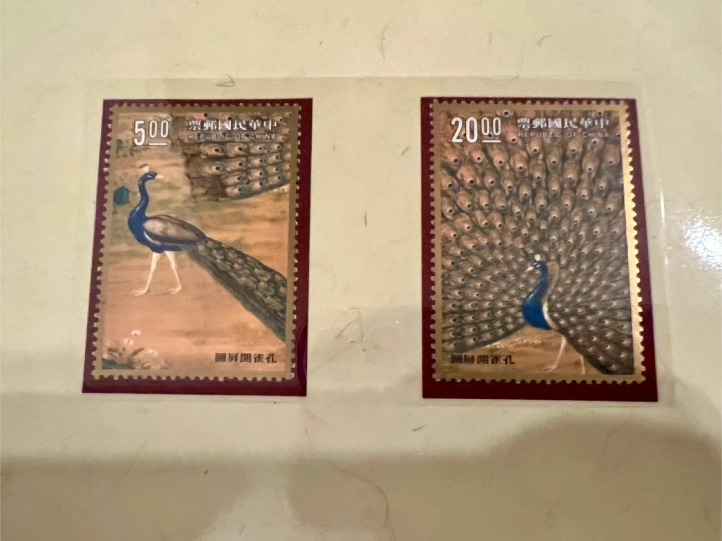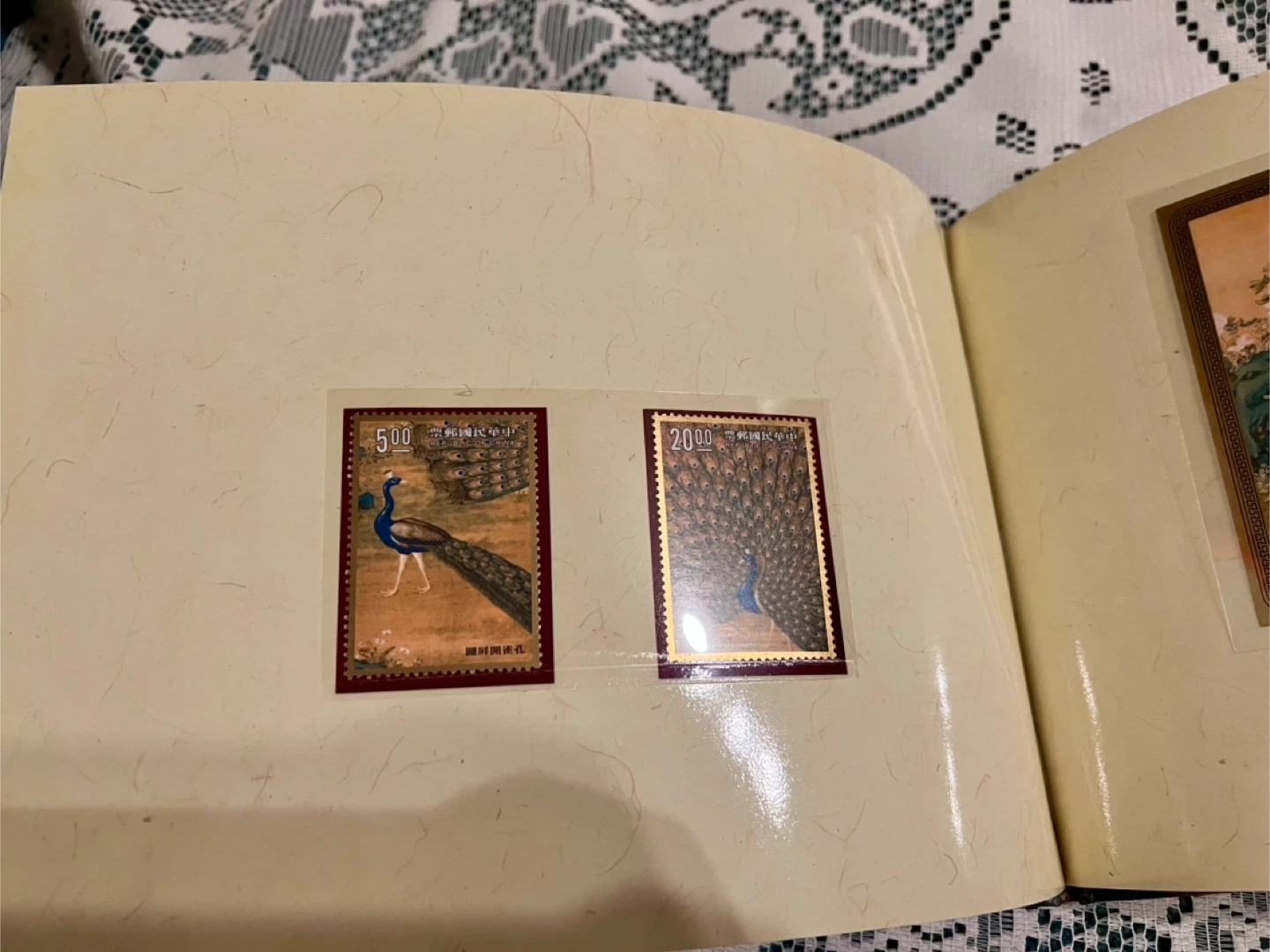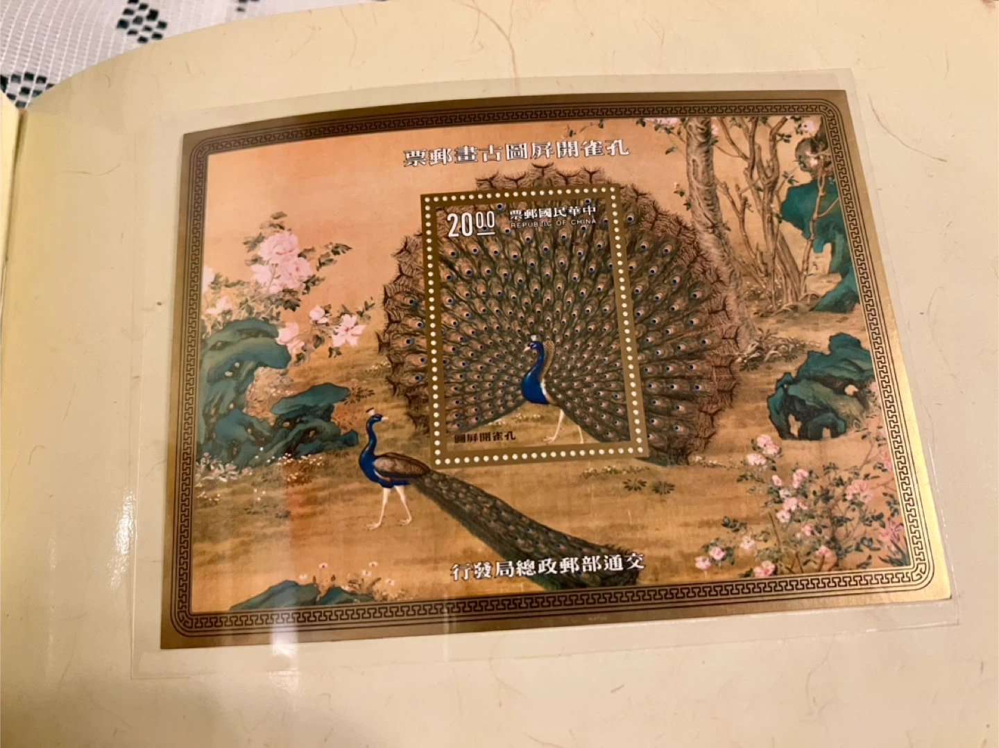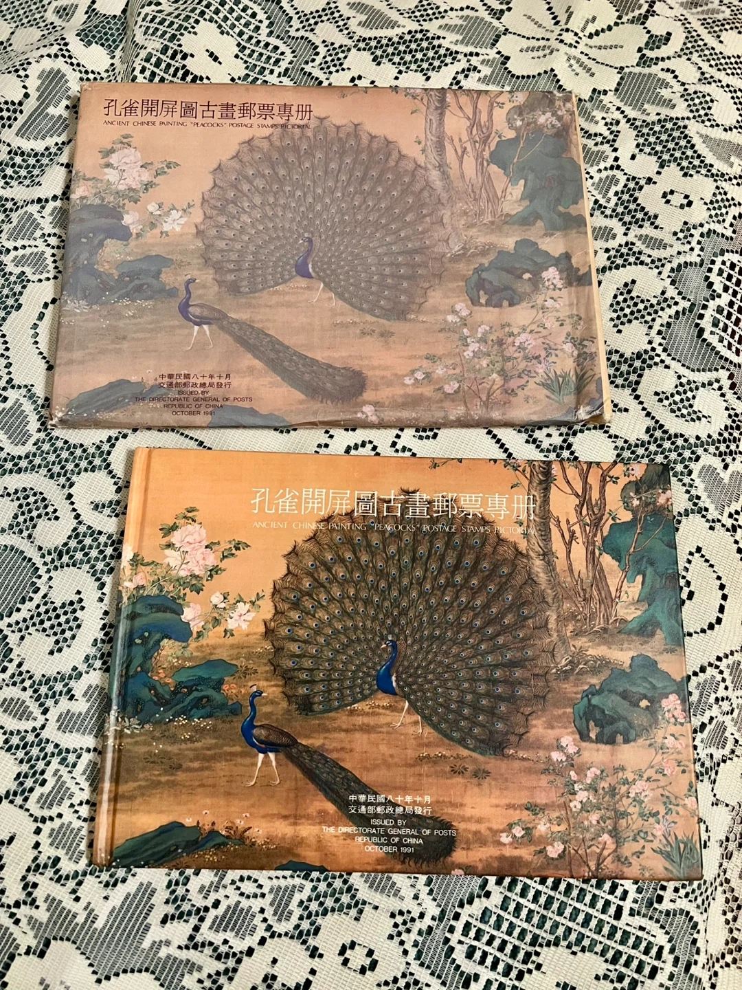This is a collection of ancient Chinese painting "Peacocks" postage stamps first-day cover. Includes a 500 and 2000 stamp. The cover is dated 30.10.91 in Taipei. It's a lovely piece for collectors!