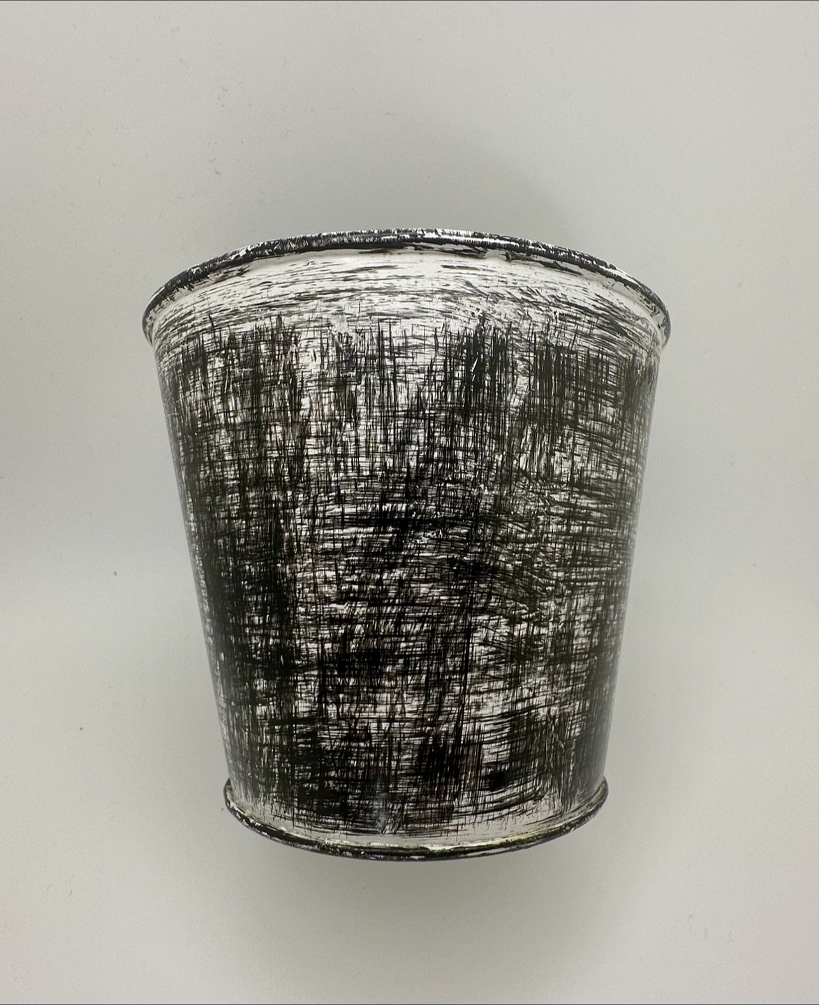 🥕 4" Cute B&W brushed Metal Cover Pot w/ a nursery pot