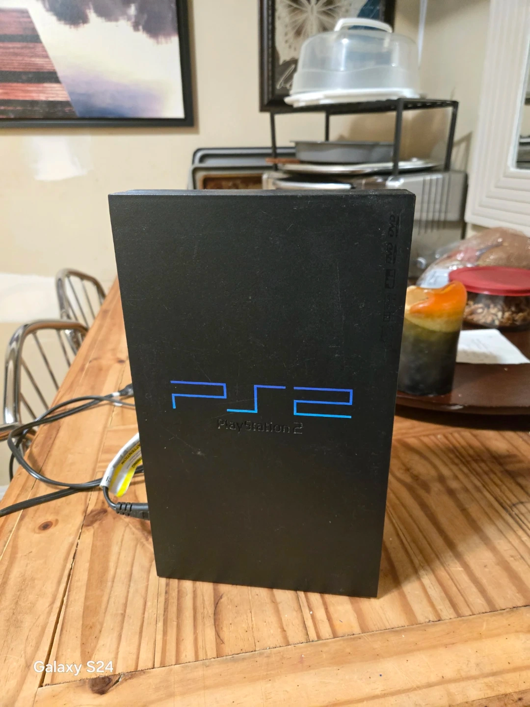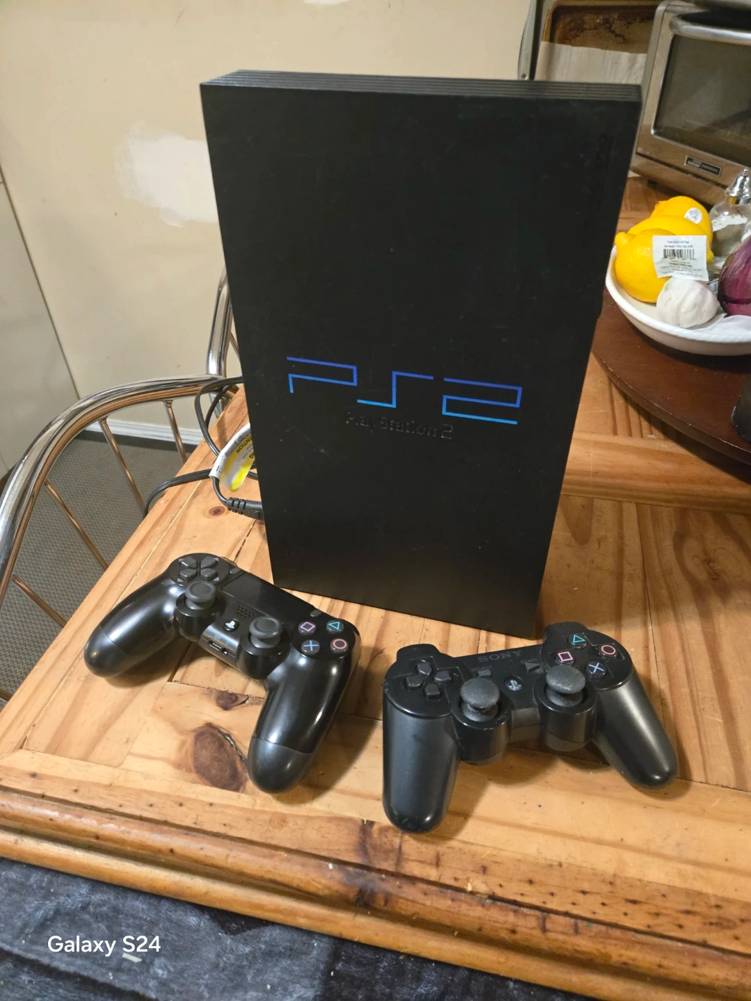 This is a Sony PlayStation 2 console. It comes with two controllers. Play your favourite PS2 games!