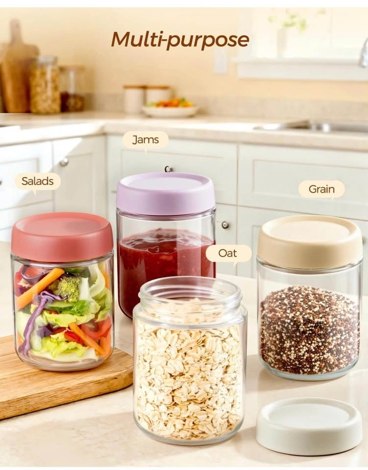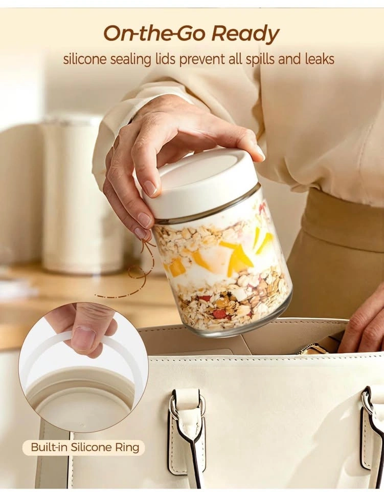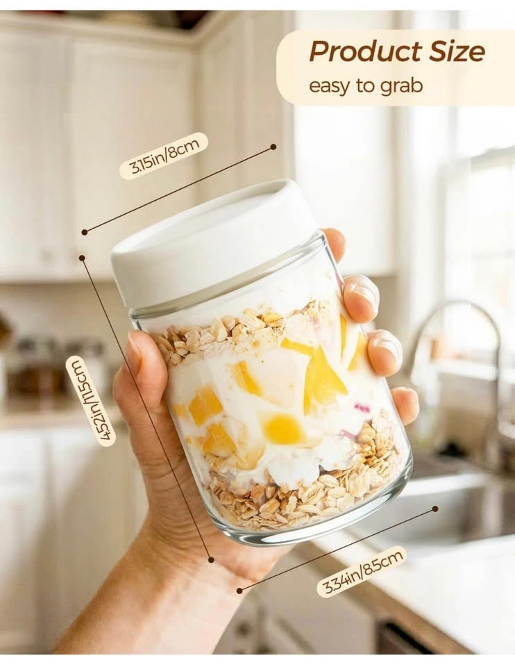 Overnight Oats Glass Jars with Lids - 4 Jars