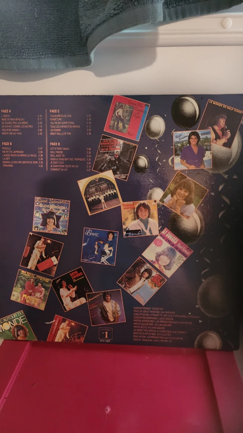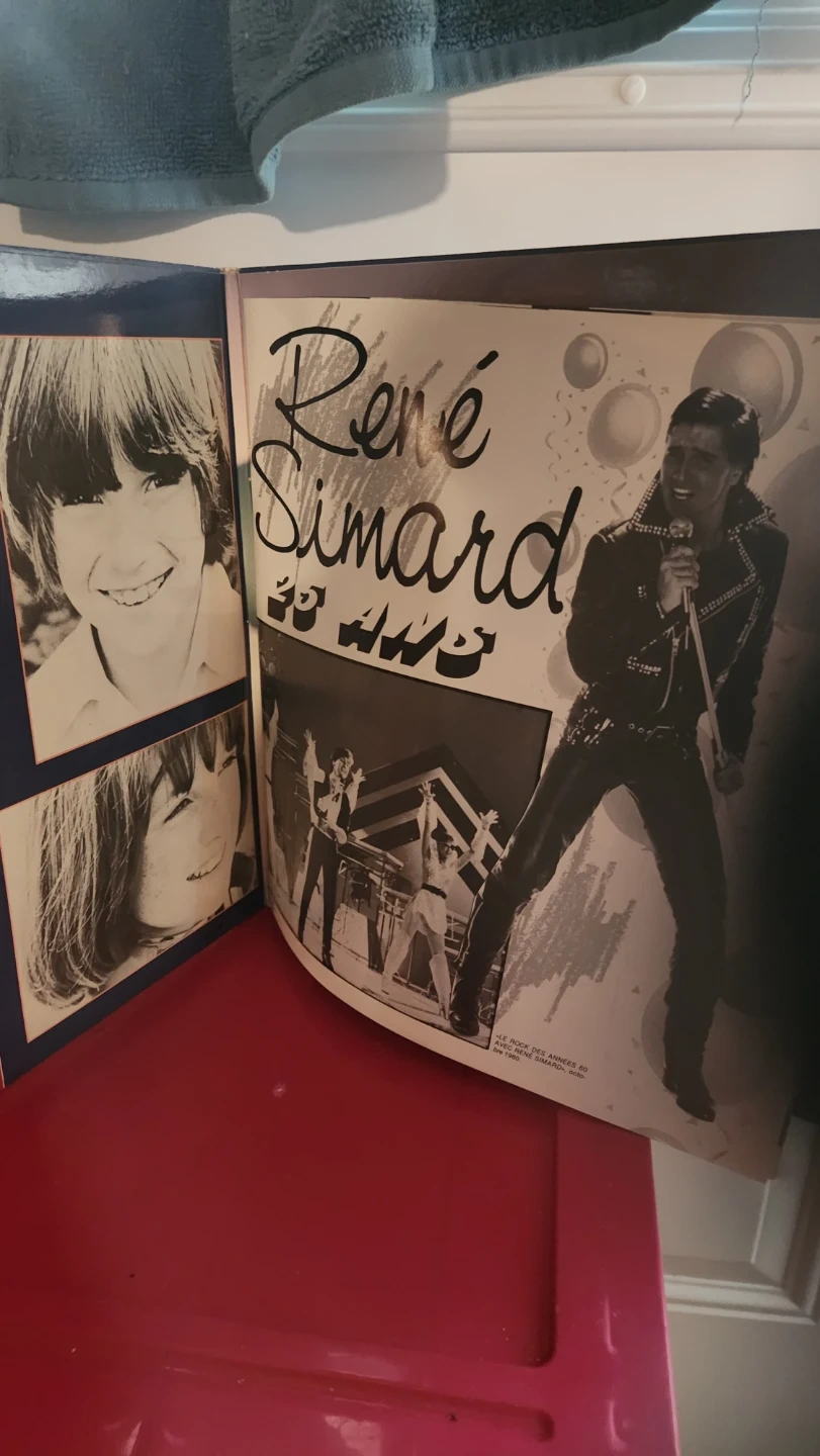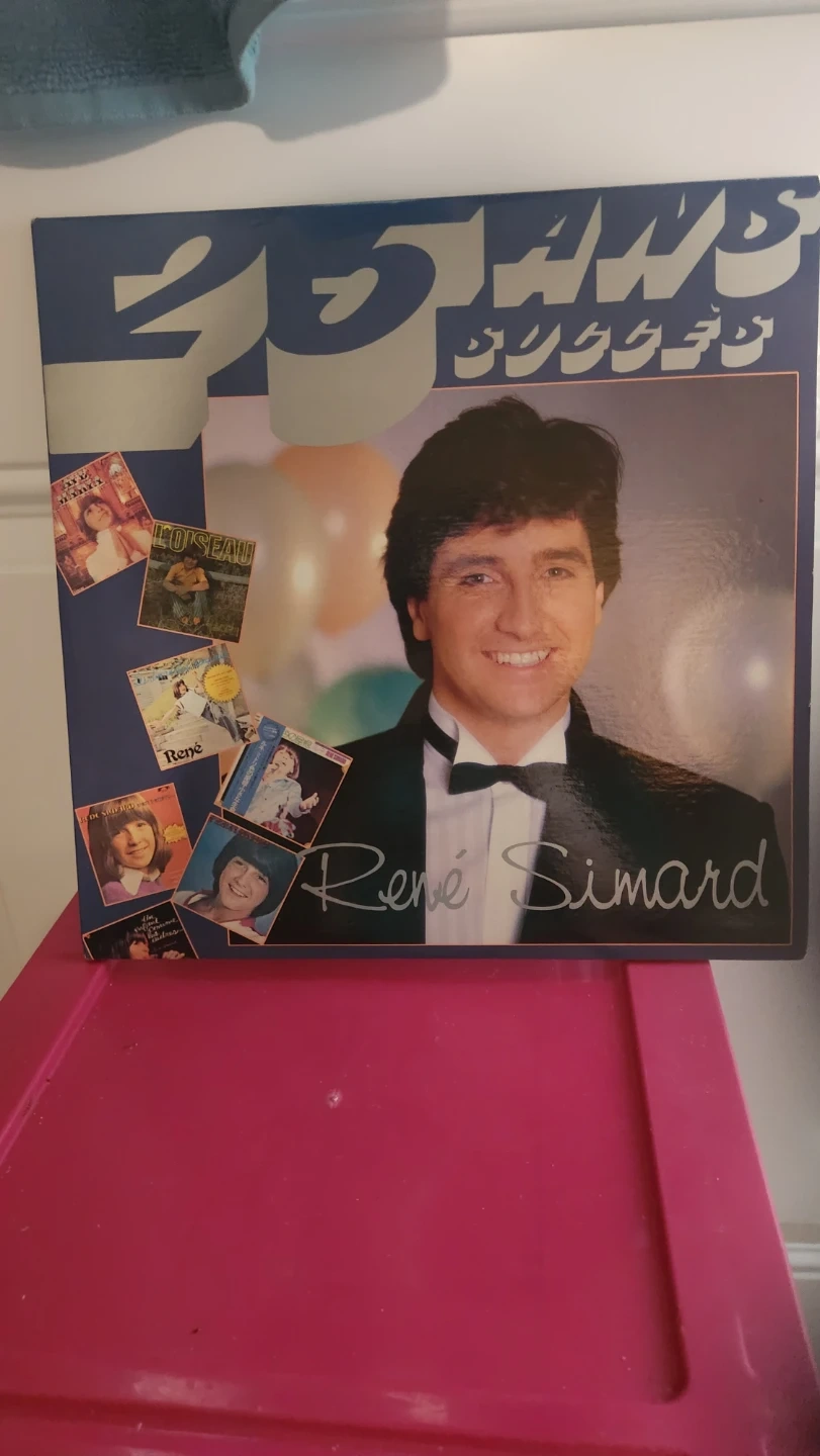 This is a "25 ANS" vinyl record by Rene Simard, featuring photos from his career. It includes images of his early years and his performances. A great collector's item for fans of Quebec music!