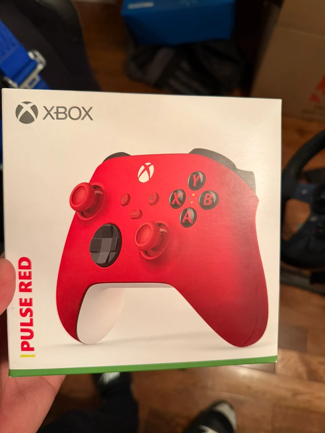 Microsoft Xbox Wireless Controller in Pulse Red. It's compatible with Xbox consoles and PC. Includes original packaging.