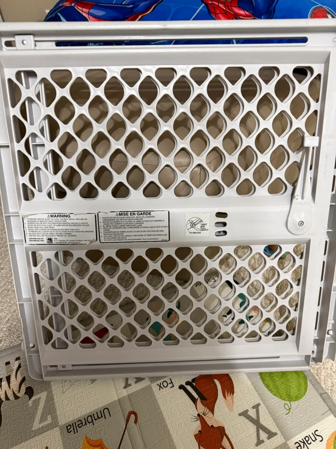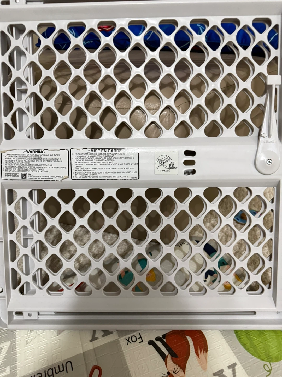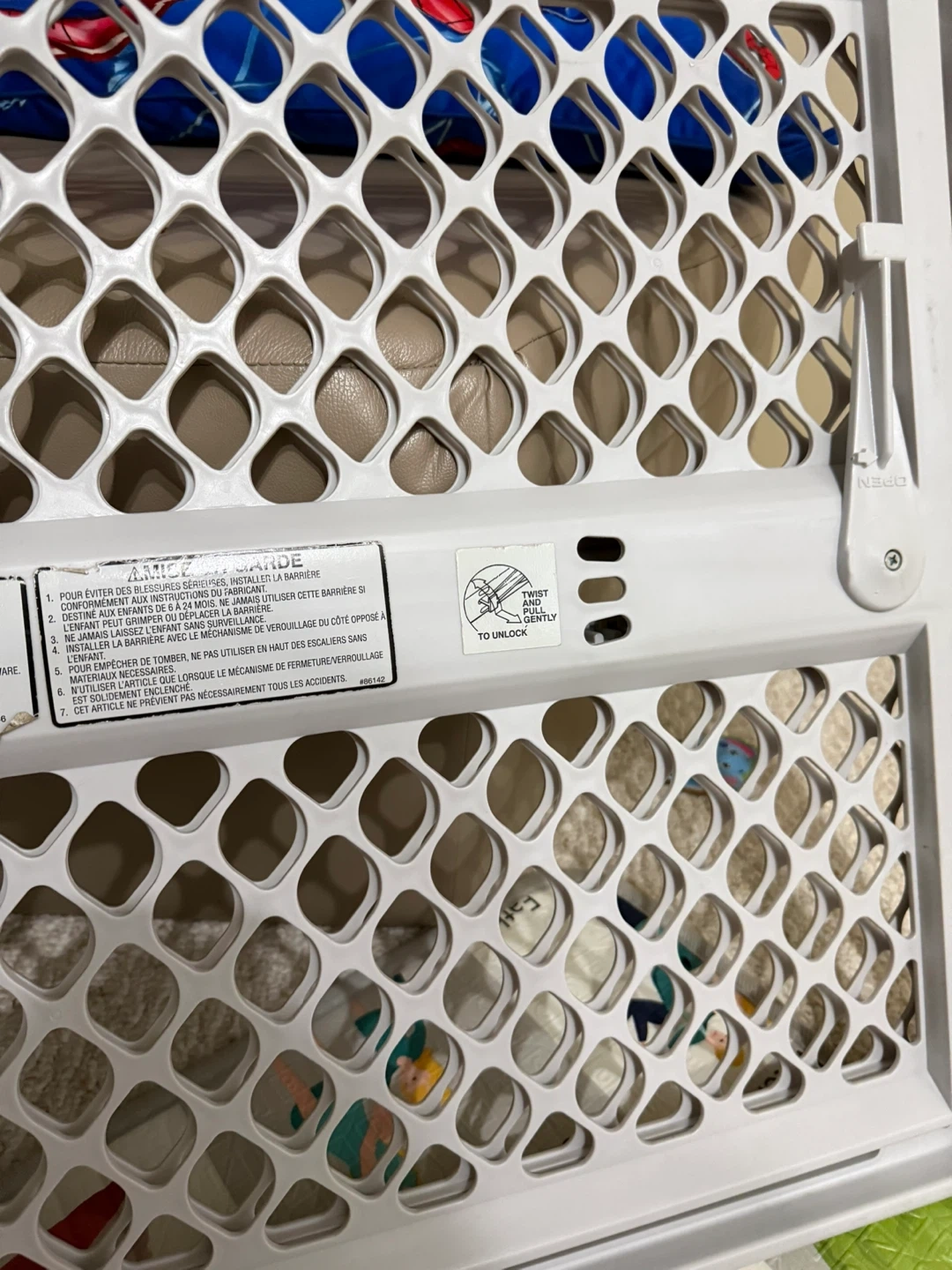 This is a white baby safety gate. It's made of durable plastic. Perfect for keeping little ones safe in doorways or at the top of stairs! ( only used it maybe once, wasn’t the correct size for are house.