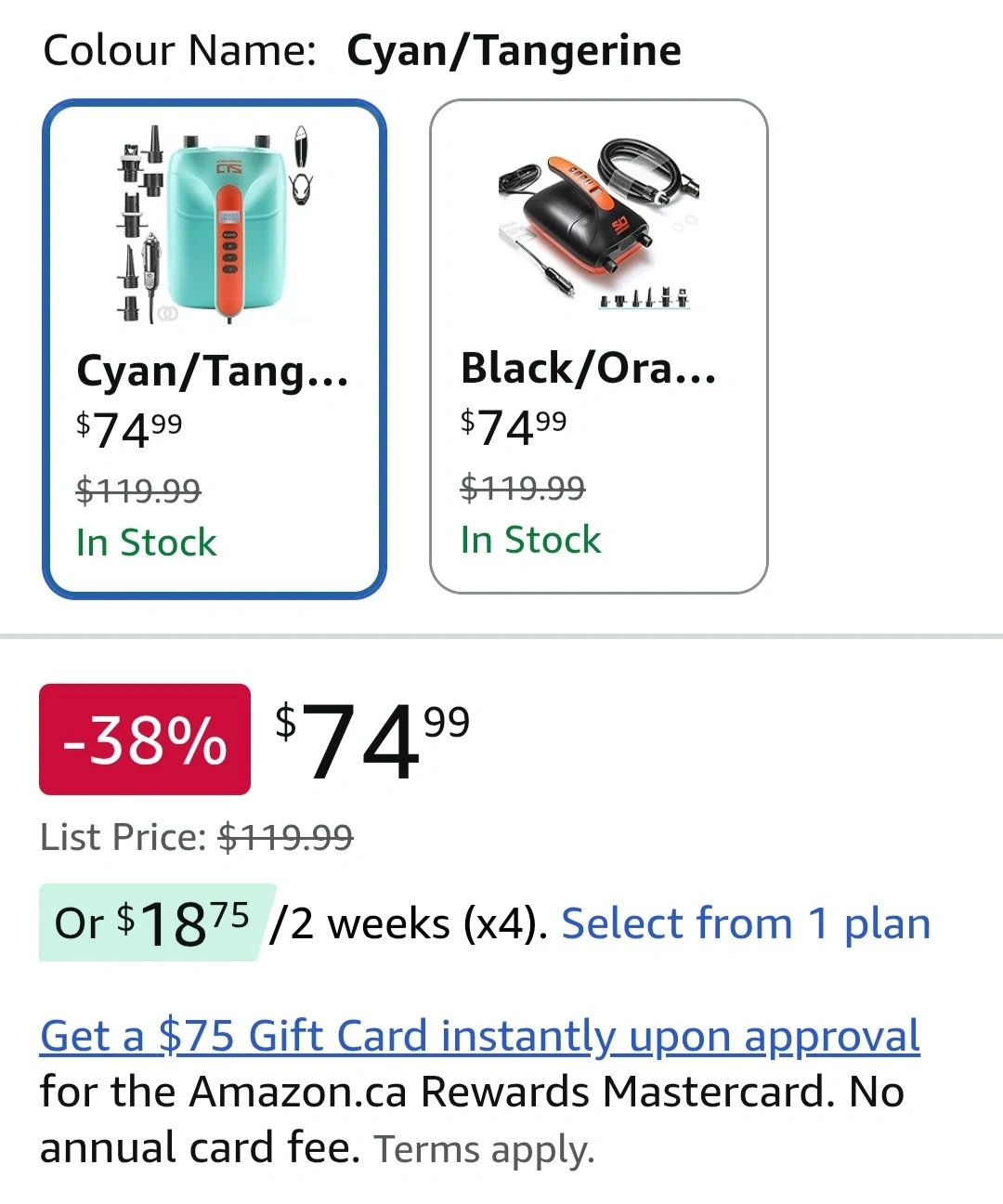 Selling a Swonder DC Electric Air Pump, model HT782, It's perfect for paddle boards, kayaks, and tents and other stuff. The box, user manual and all the parts are included, so you'll have everything you need to get started. It is new and unused. Originally it costs $120 in Amazon but they have a 38% off that makes it $74.99
