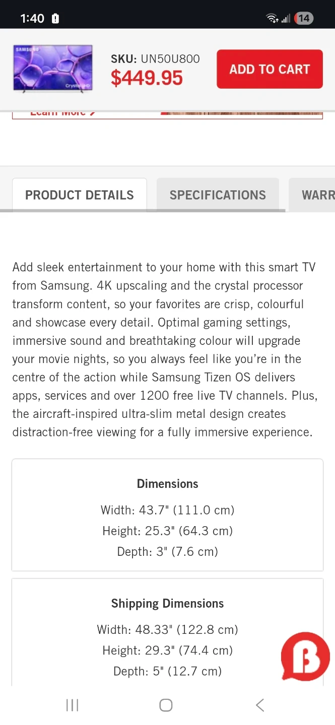 Samsung 50" Crystal UHD 4K Smart TV - U8000F