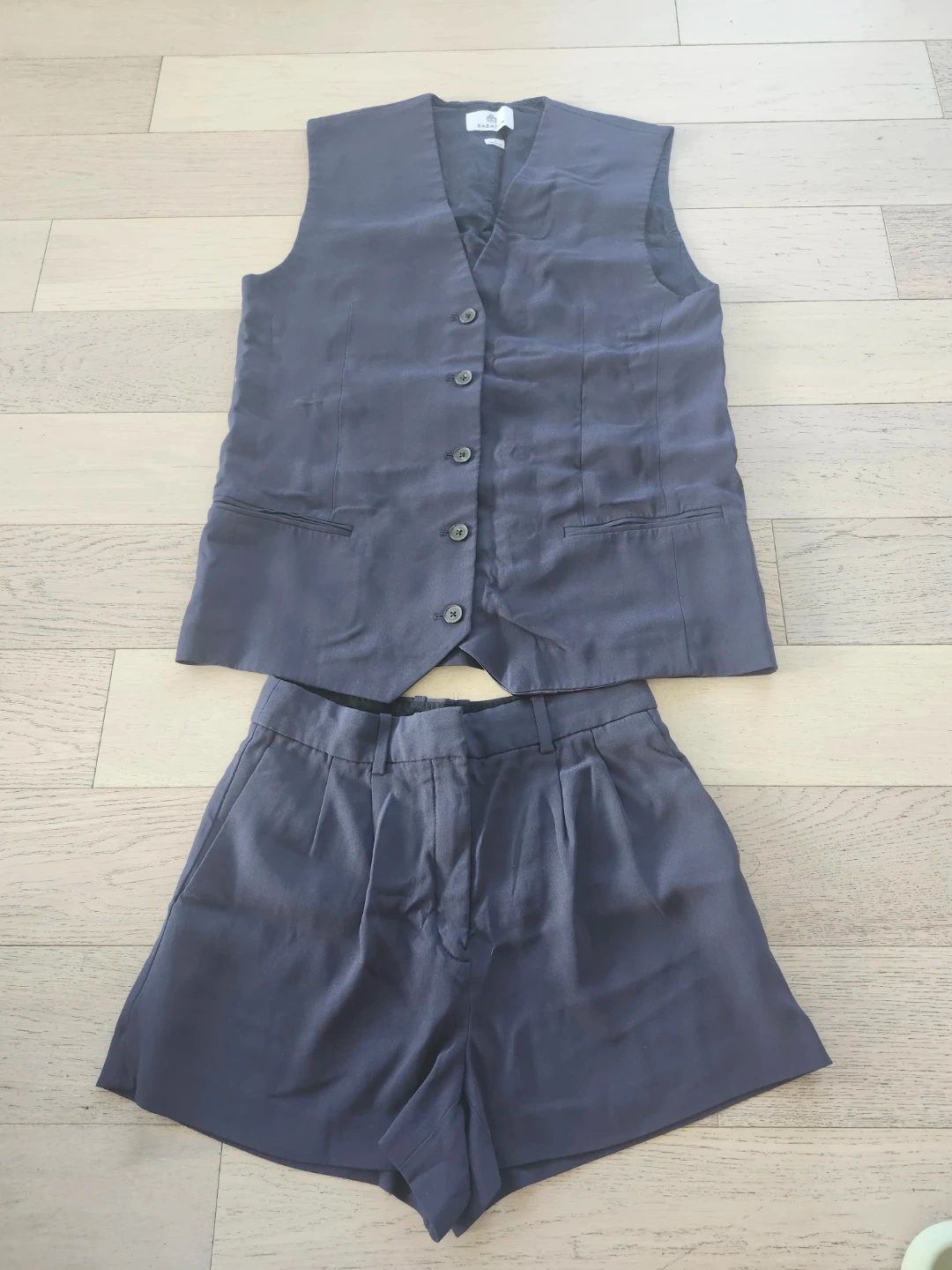This is a BABATON navy vest and shorts set. The vest is size S and the shorts are size 6. Made from a lightweight material.