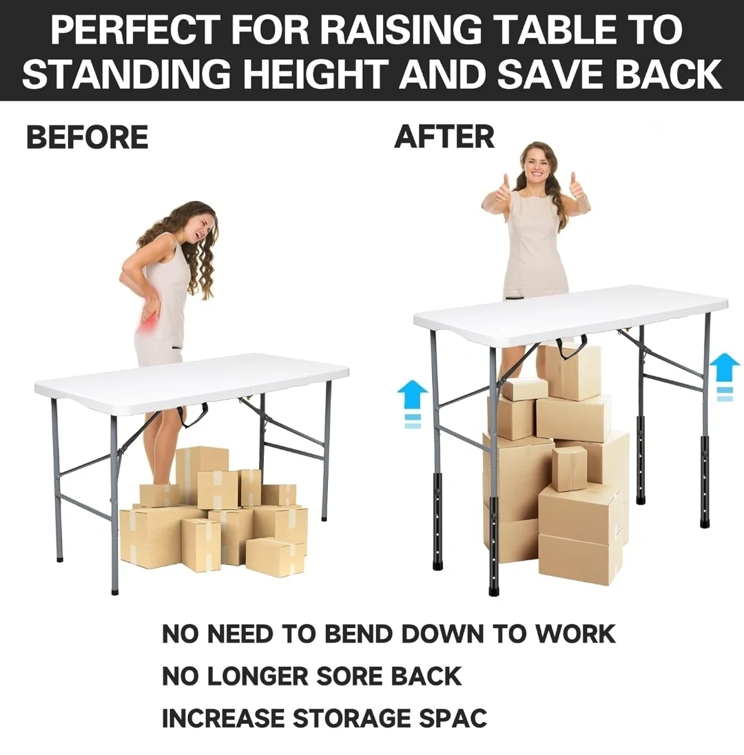 Folding Table Leg Extenders - 4 Levels Adjustable Height