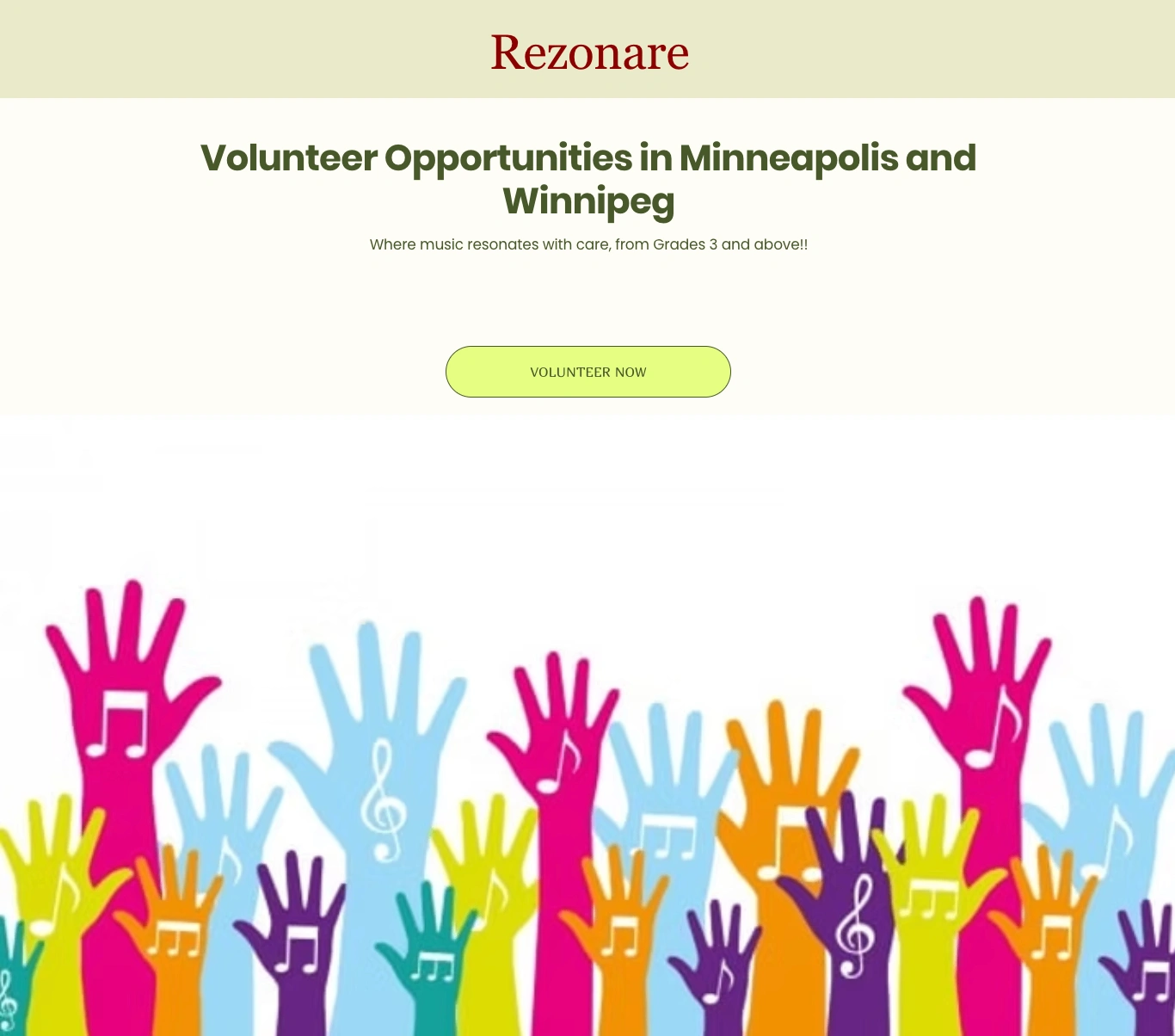 I’m a Winnipeg student in 8th Grade from St. John's Ravenscourt School and the founder of Rezonare, a youth-led nonprofit organization that connects young musicians with senior living homes to bring joy through music.