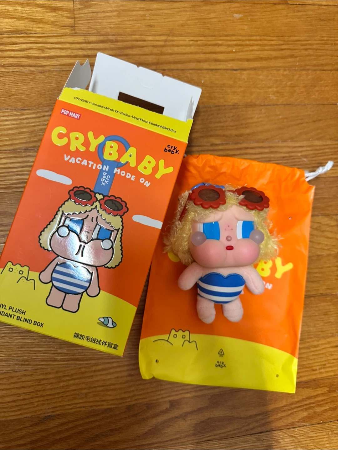 Selling a brand new CRYBABY Vacation Mode On Series Vinyl Plush Pendant Blind Box from POP MART! It comes with the original box