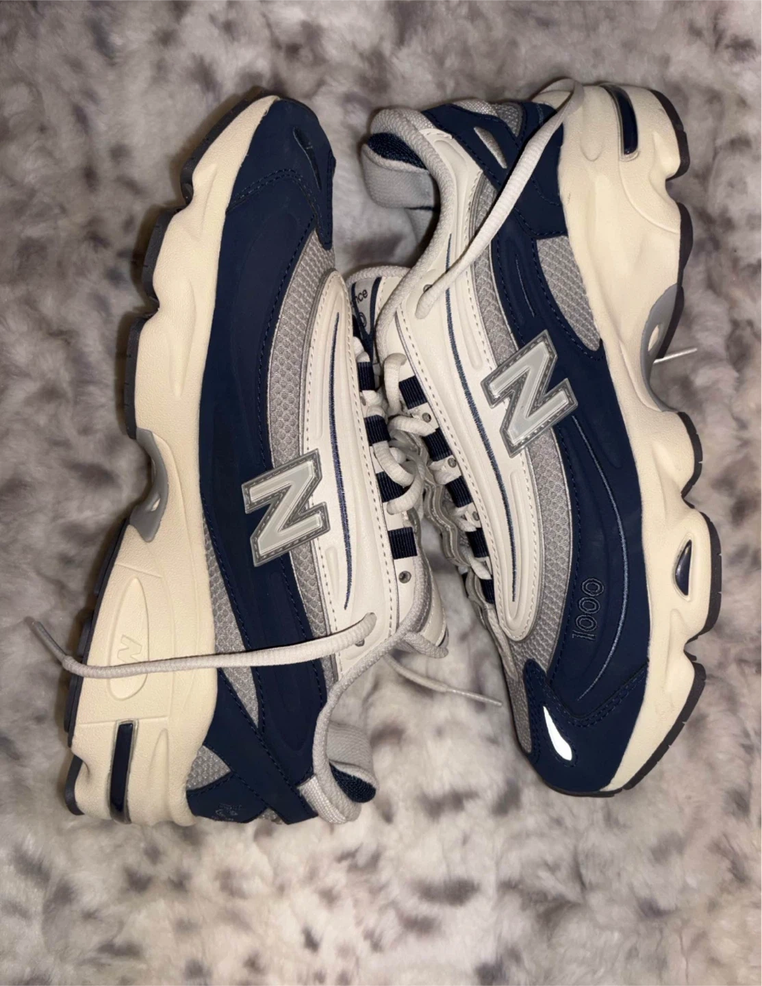 These New Balance 1000 sneakers come in a classic navy and white colourway. They feature a breathable mesh and synthetic upper. These shoes are great for everyday wear.