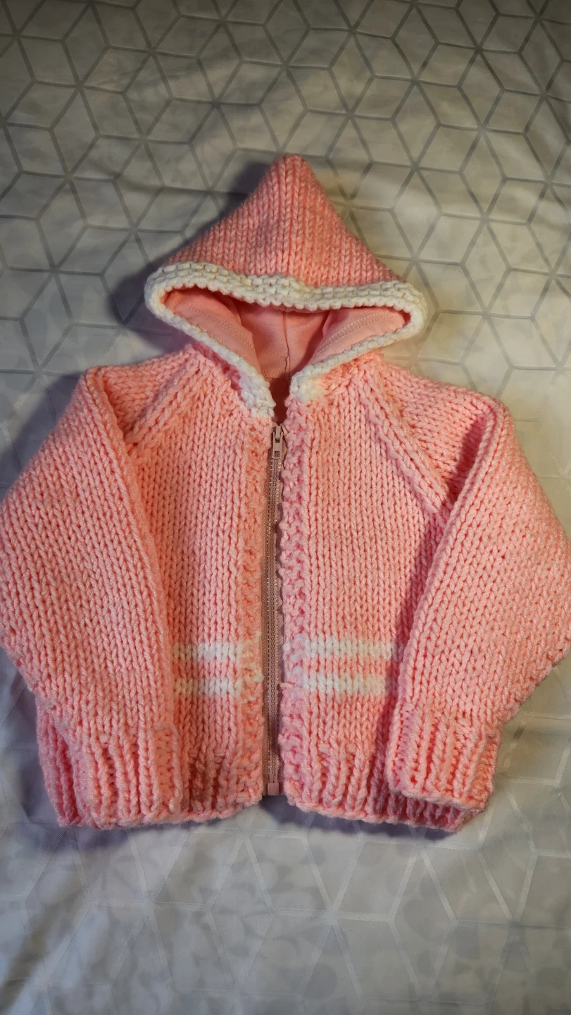 Warm & cozy hand knit, front zip, lined hoodie for kids.