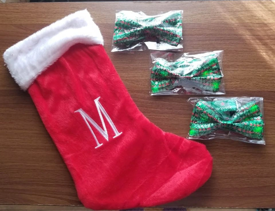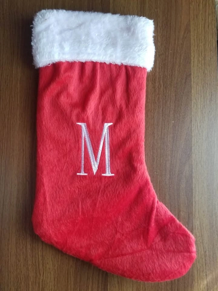 1 x Fuzzy soft Christmas stocking with the initial letter “M”