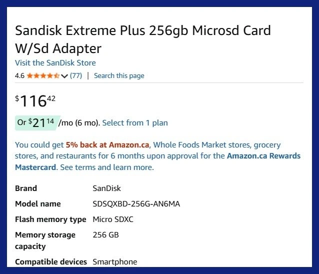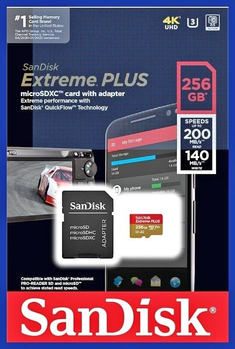 SanDisk Extreme 256GB microSDXC UHS-I Memory Card with Adapter